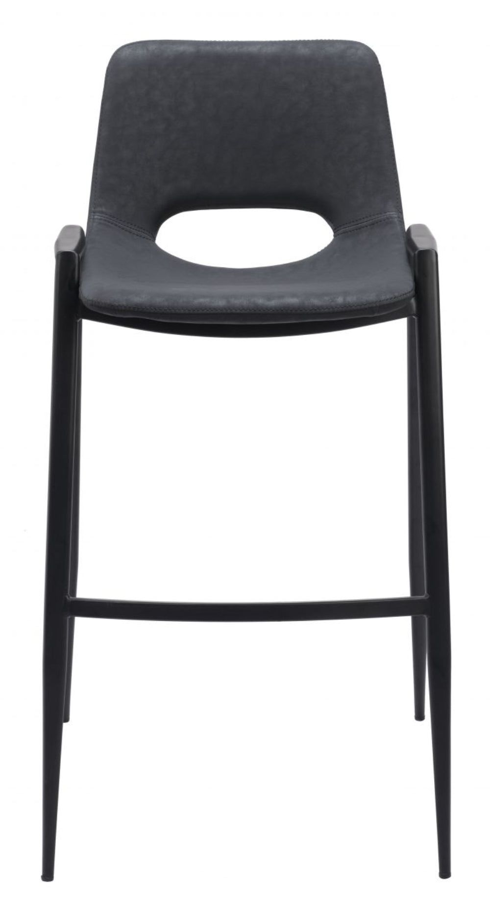 Refined yet bold, the Desi Barstool Set by Zuo Modern brings a sleek mid-century silhouette to modern interiors. Wrapped in durable black faux leather, each stool features armrests and a supportive footrest, combining comfort with minimalist design.