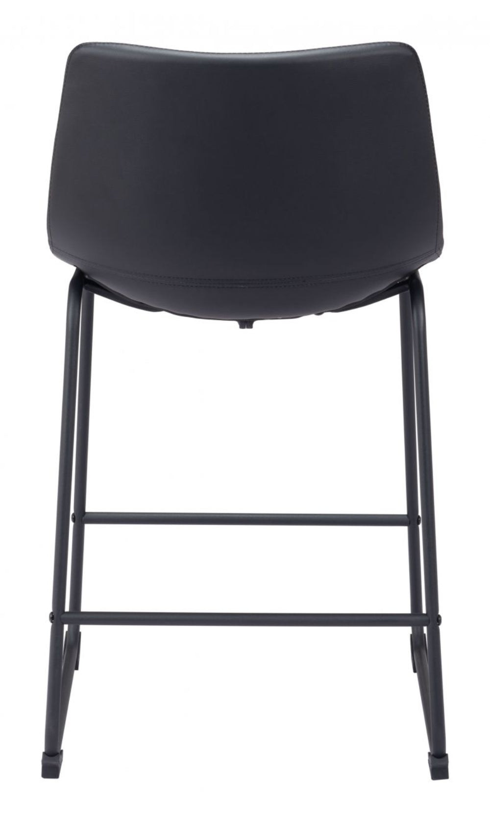 Faux Leather Counter Stool 34.6 Inch H, Black with Powder Coated Steel Legs by Zuo Modern (Set of 2)