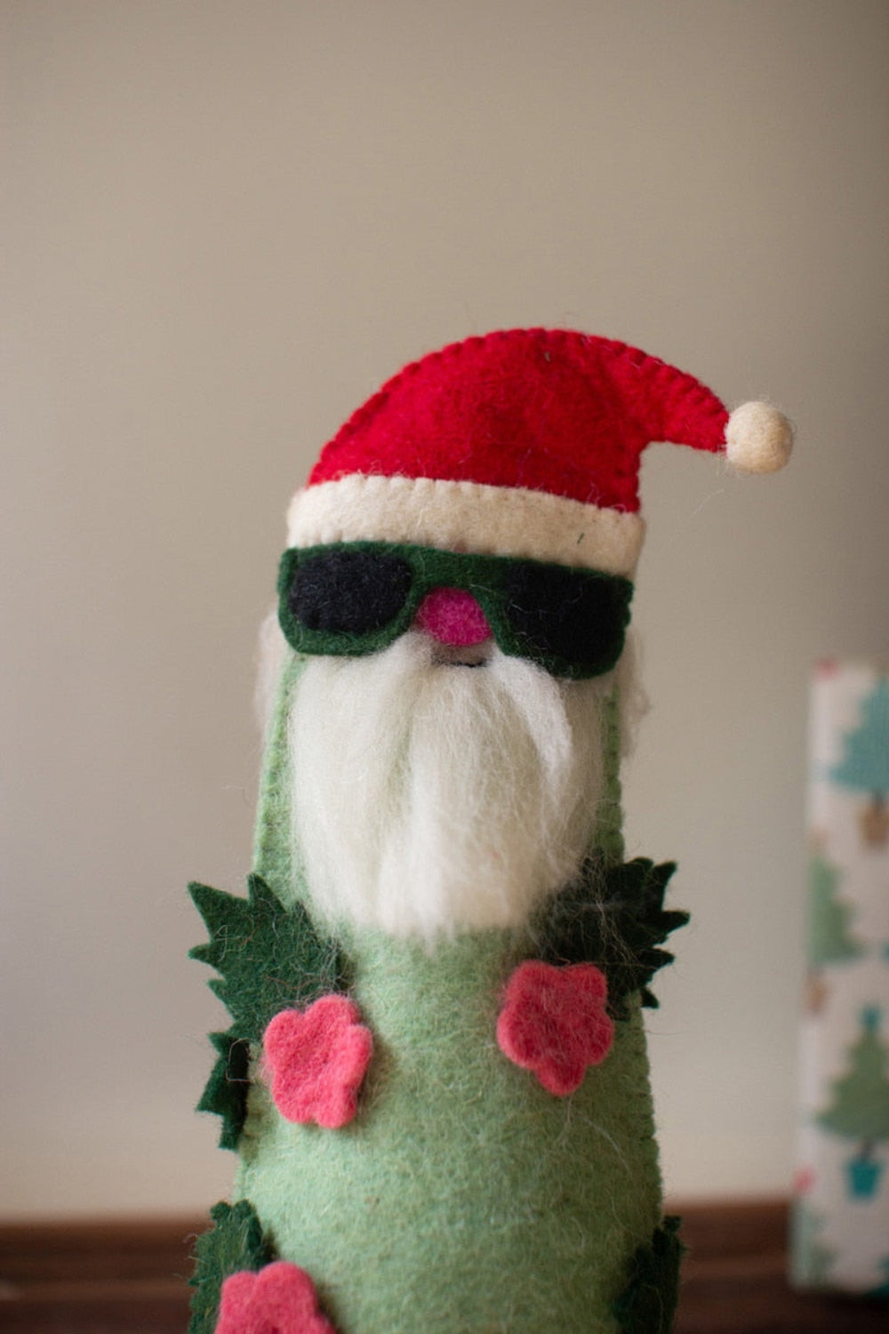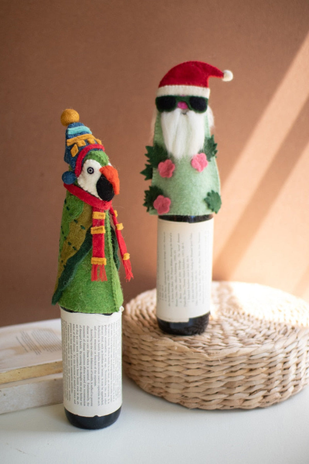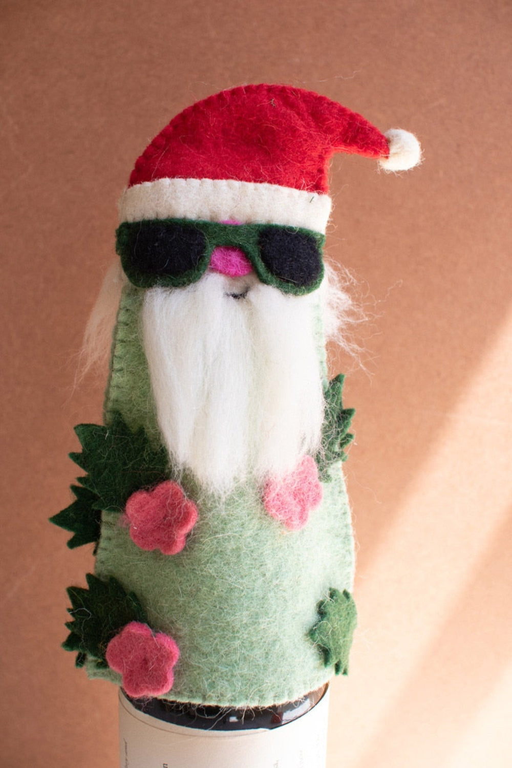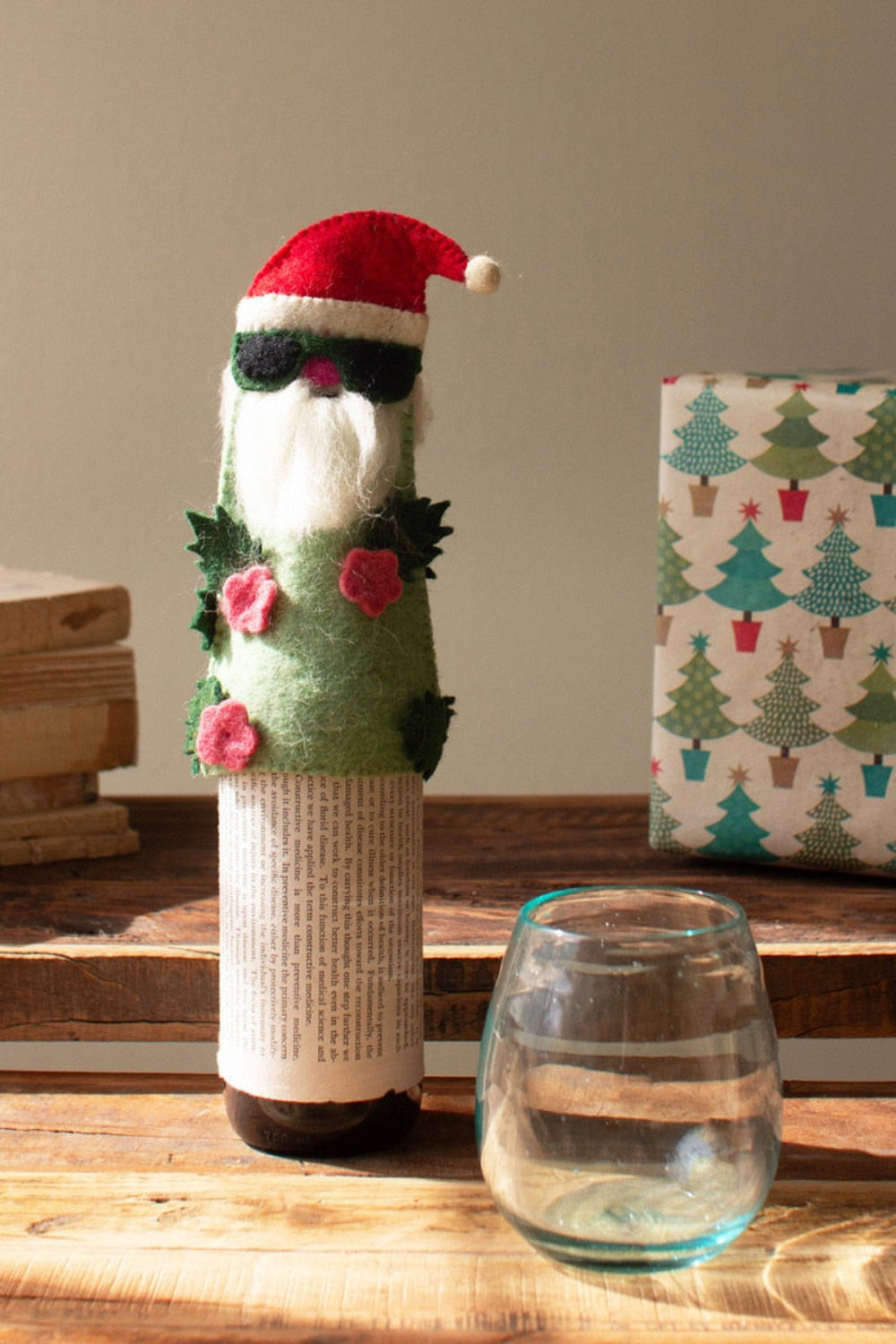 Felt Bottle Topper Cool Santa Christmas Decor 8"Tall by Kalalou