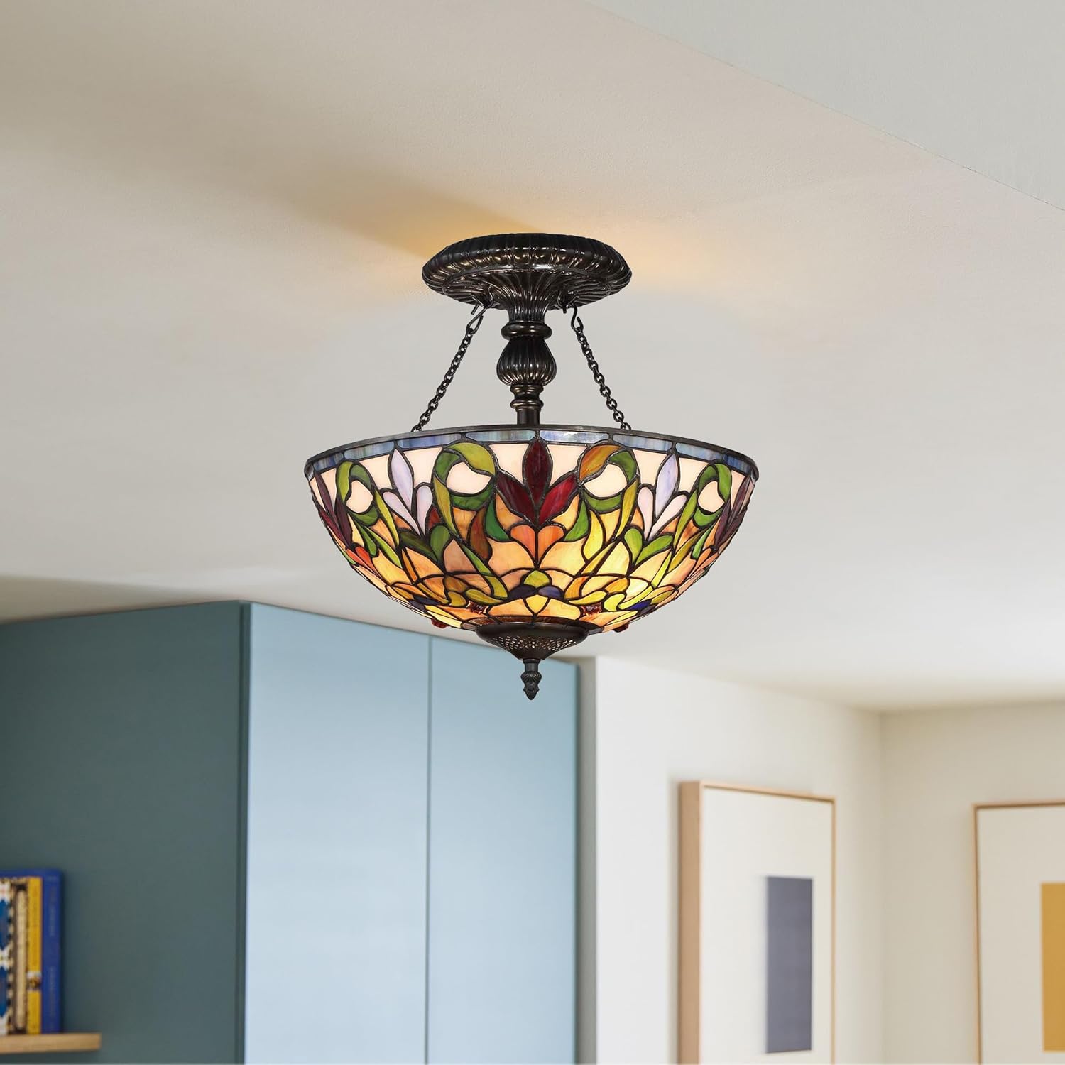 Fine Art Lighting Semi-Flush Mount Tiffany Ceiling Lamp – Classic Stained Glass Flush Light