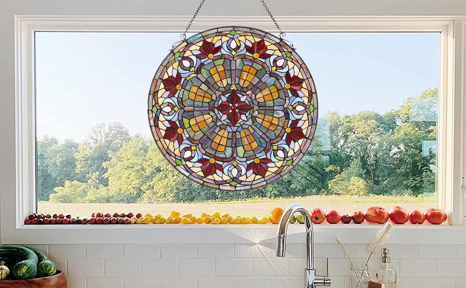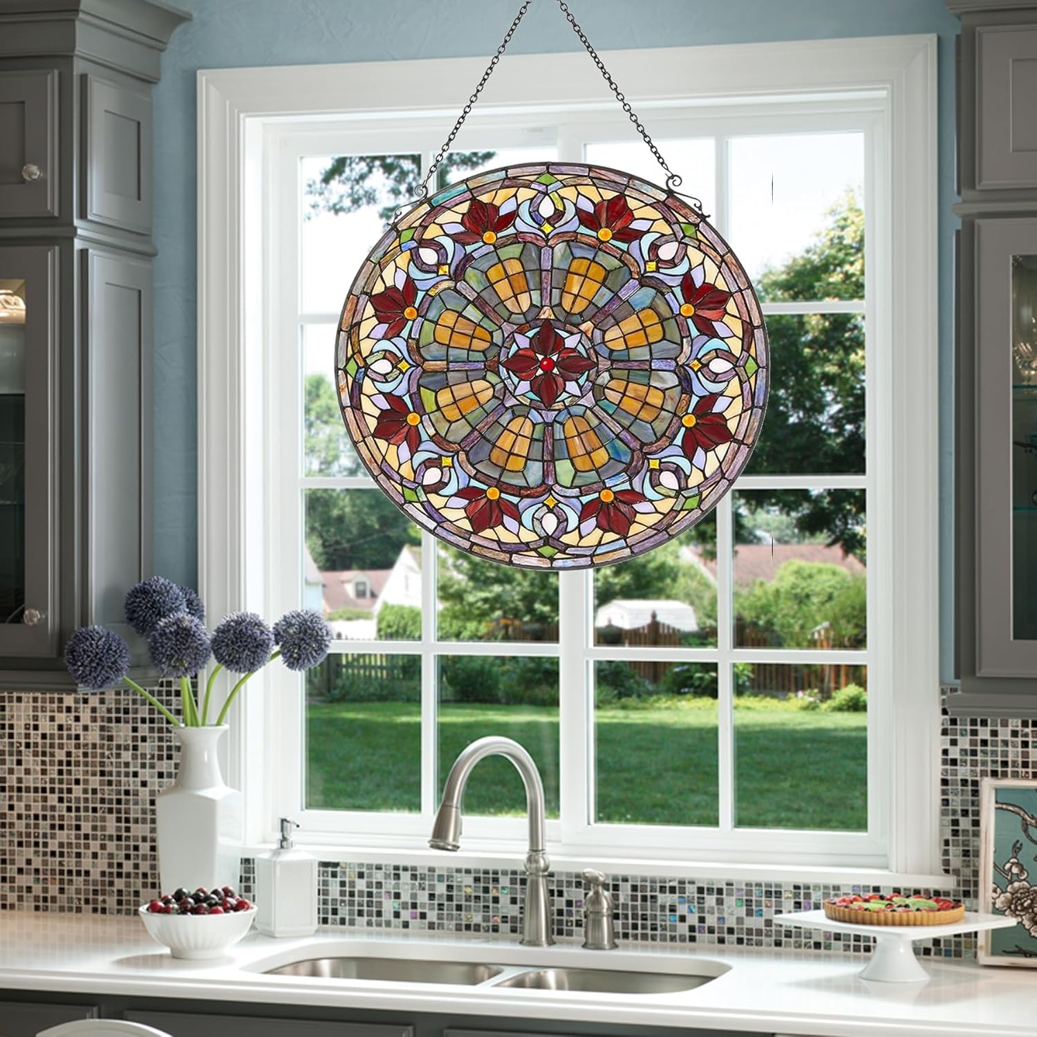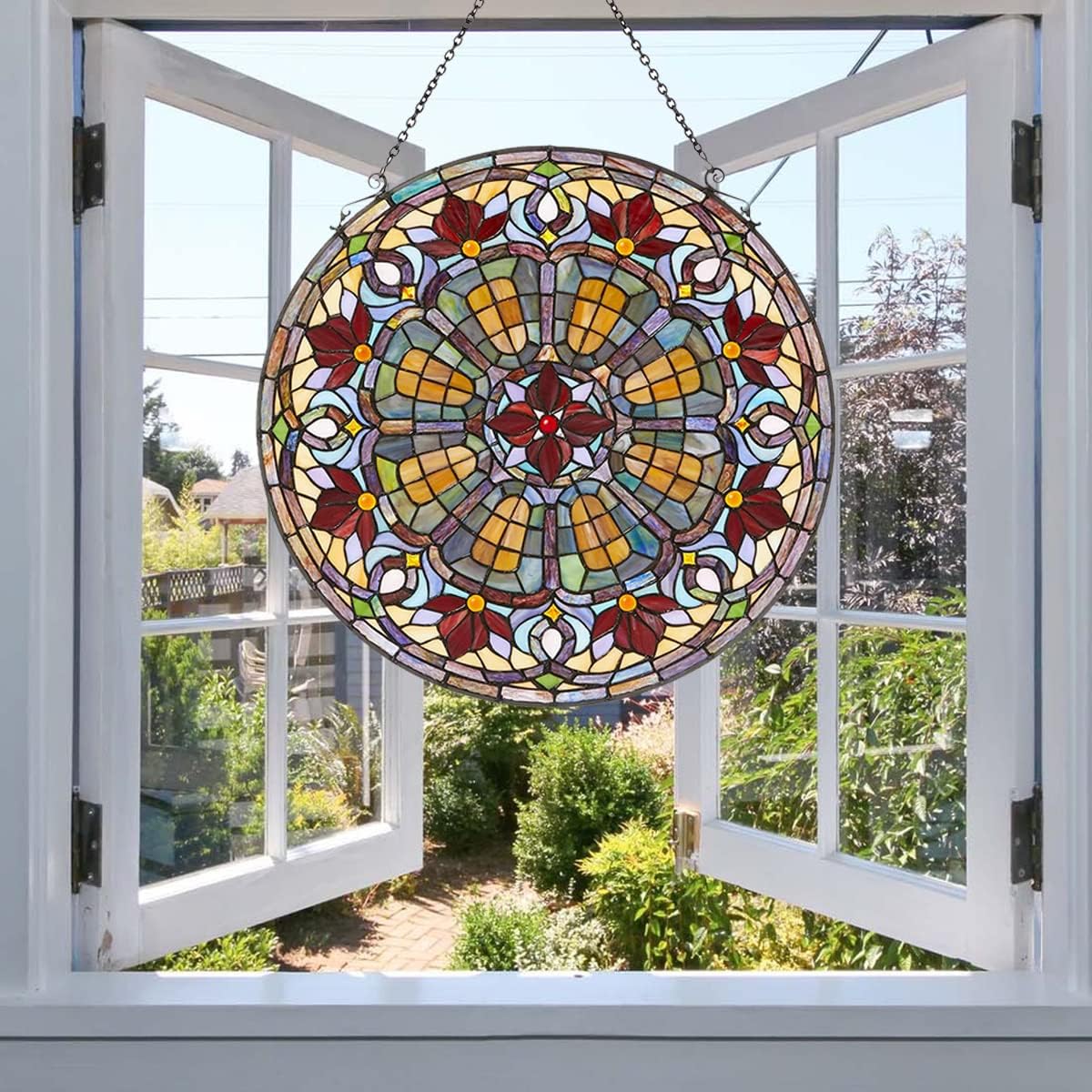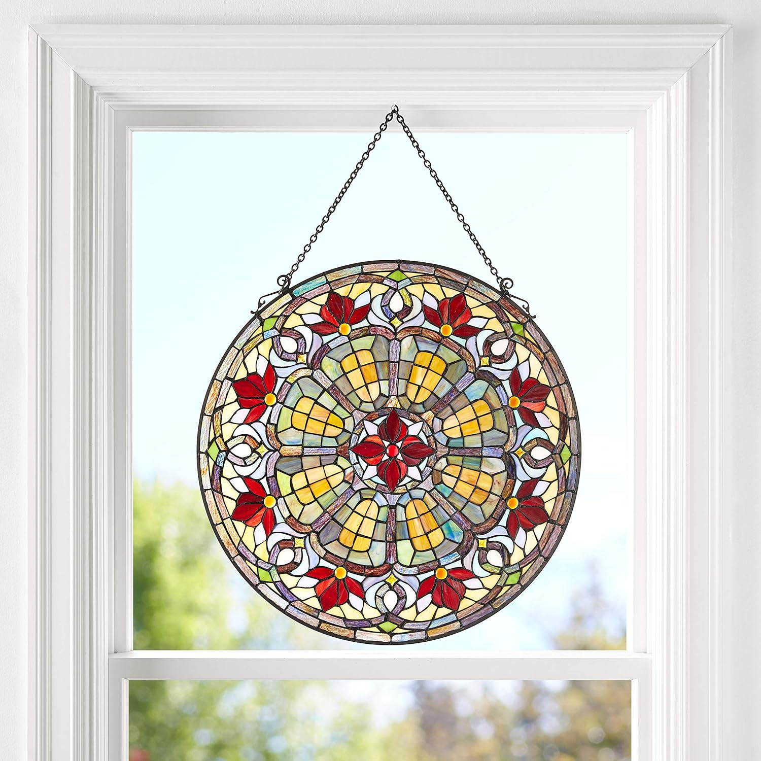 Fine Art Lighting Stained Glass Window Panel – 24" Multicolor Tiffany Style Decorative Hanging Art