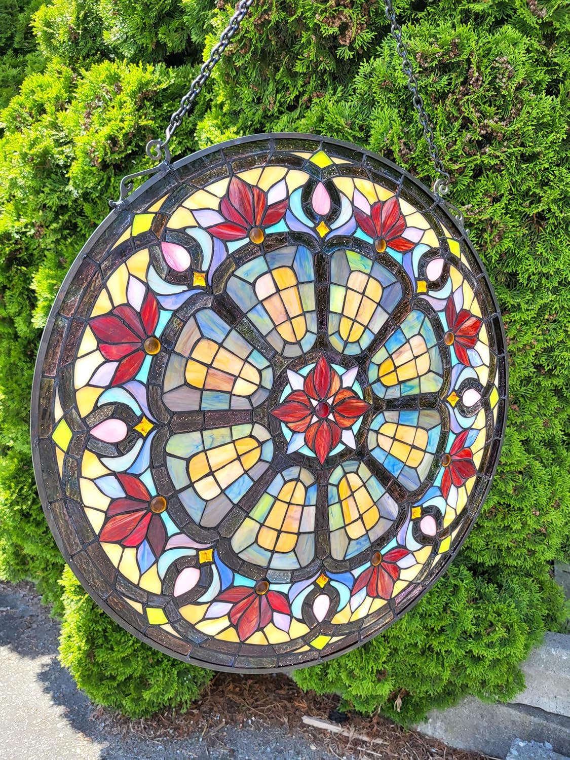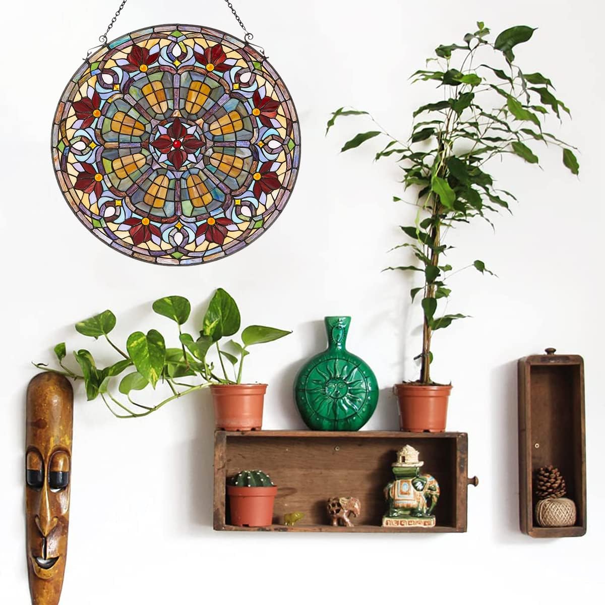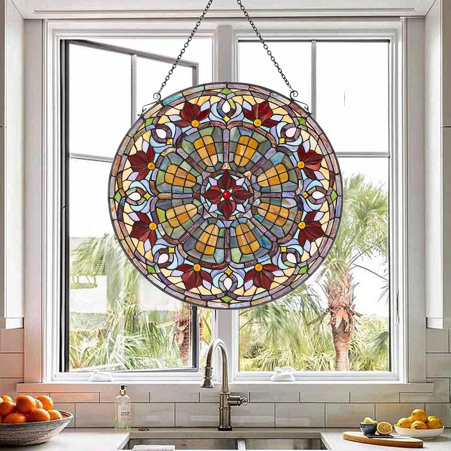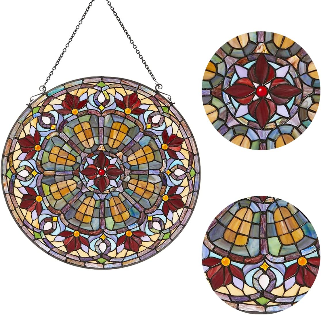 Fine Art Lighting Stained Glass Window Panel – 24" Multicolor Tiffany Style Decorative Hanging Art