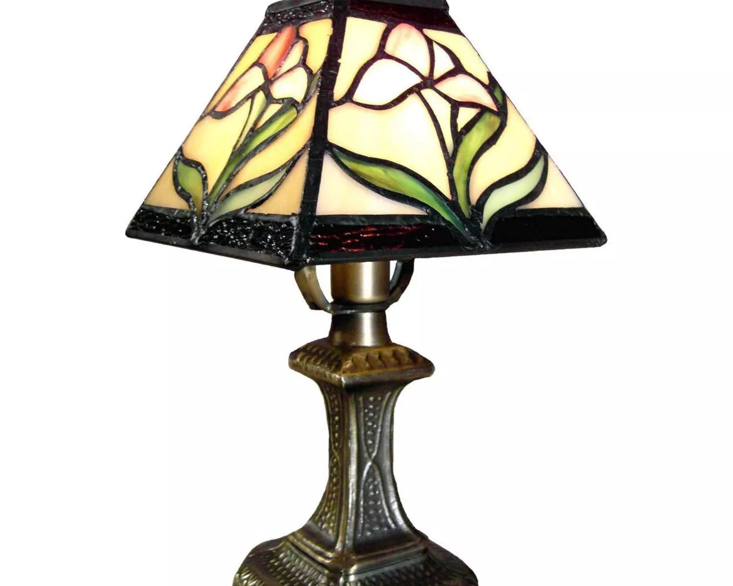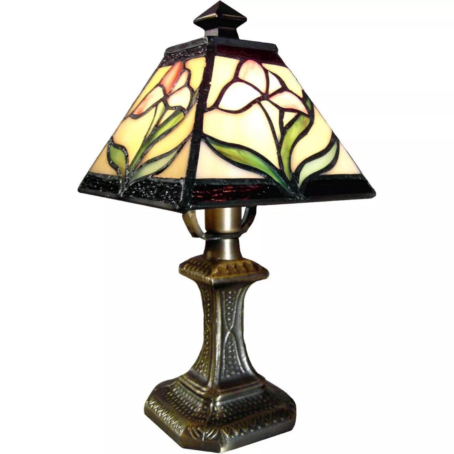 Material: Decorative metal base with art glass shade