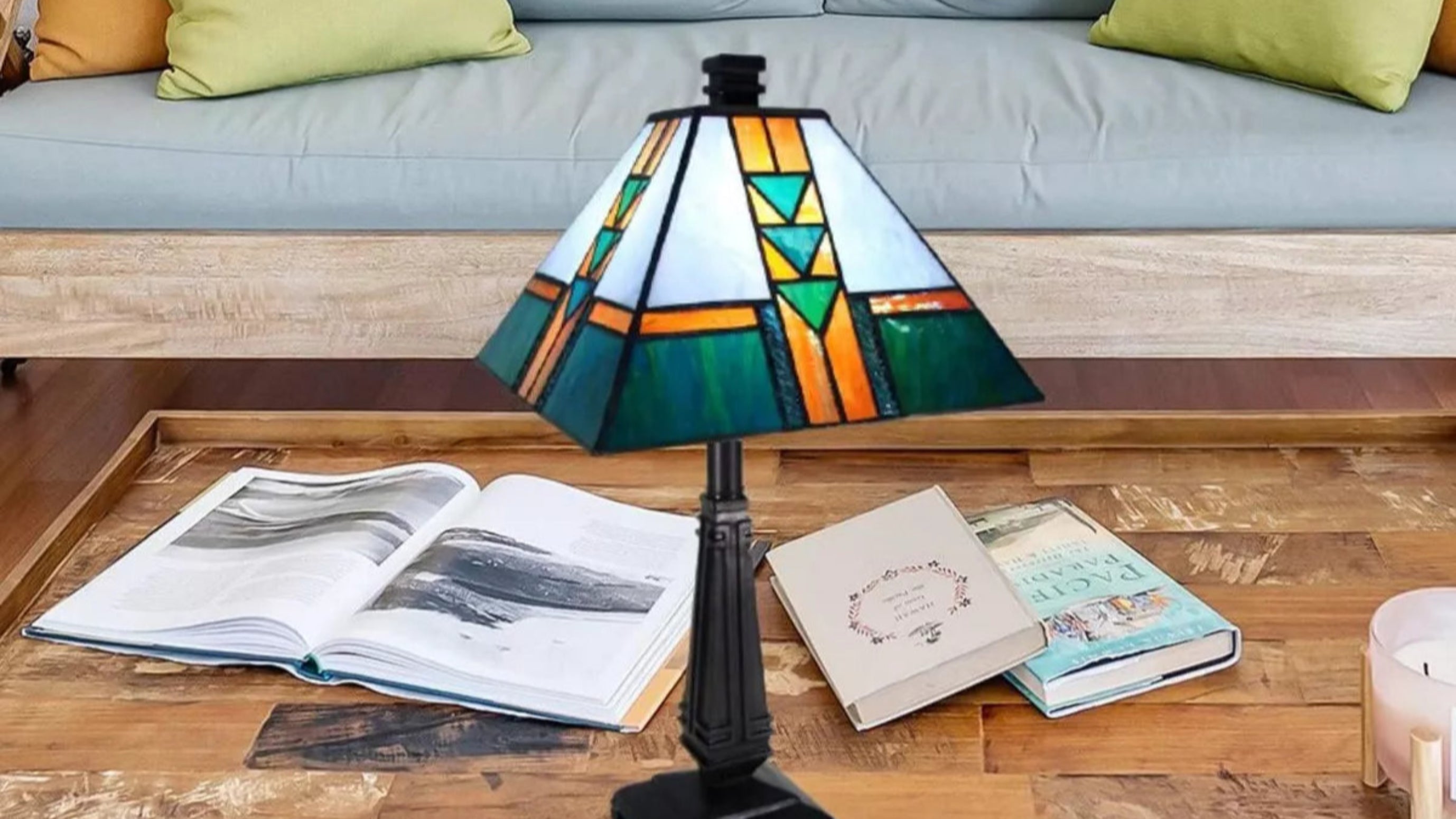 Material: Handcrafted stained glass shade with durable metal and resin base