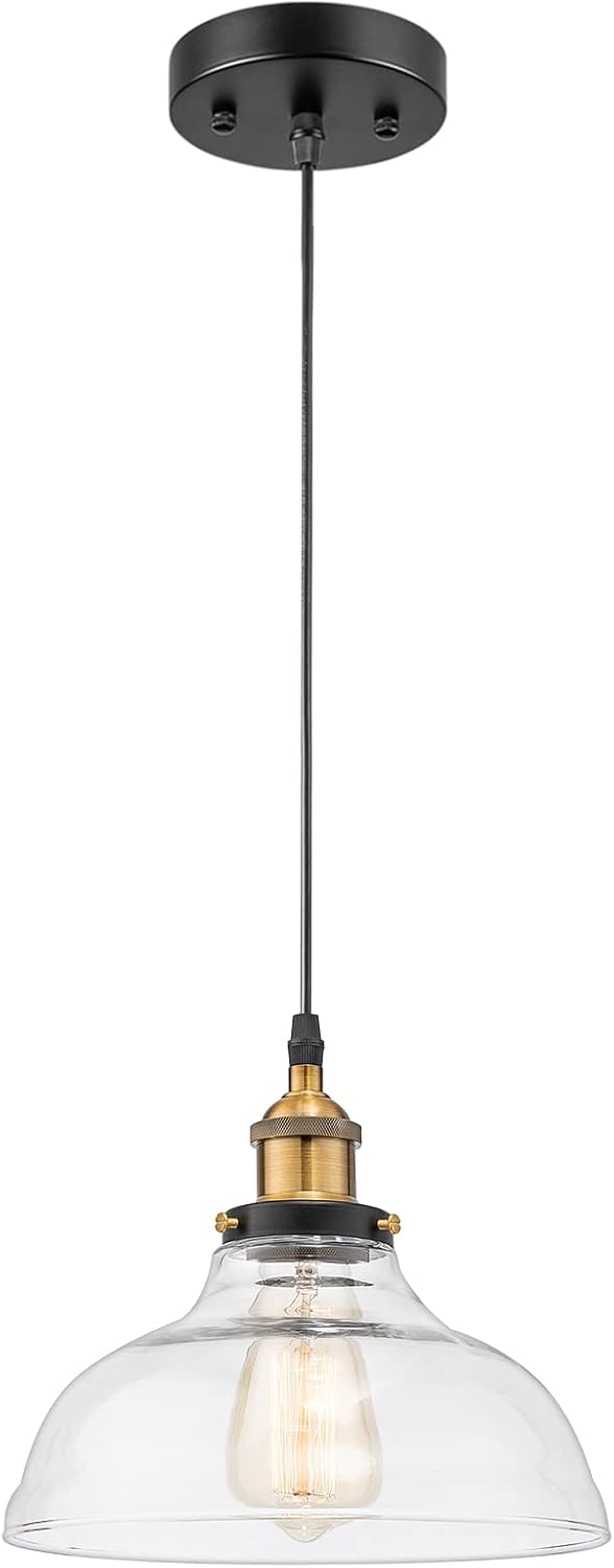- Modern Design: Black finish and glass shade provide sleek, contemporary style
