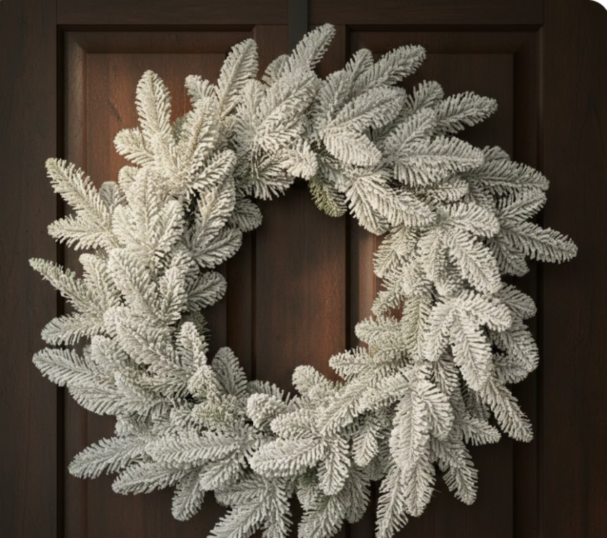 - Soft white flocking creates a winter-inspired look