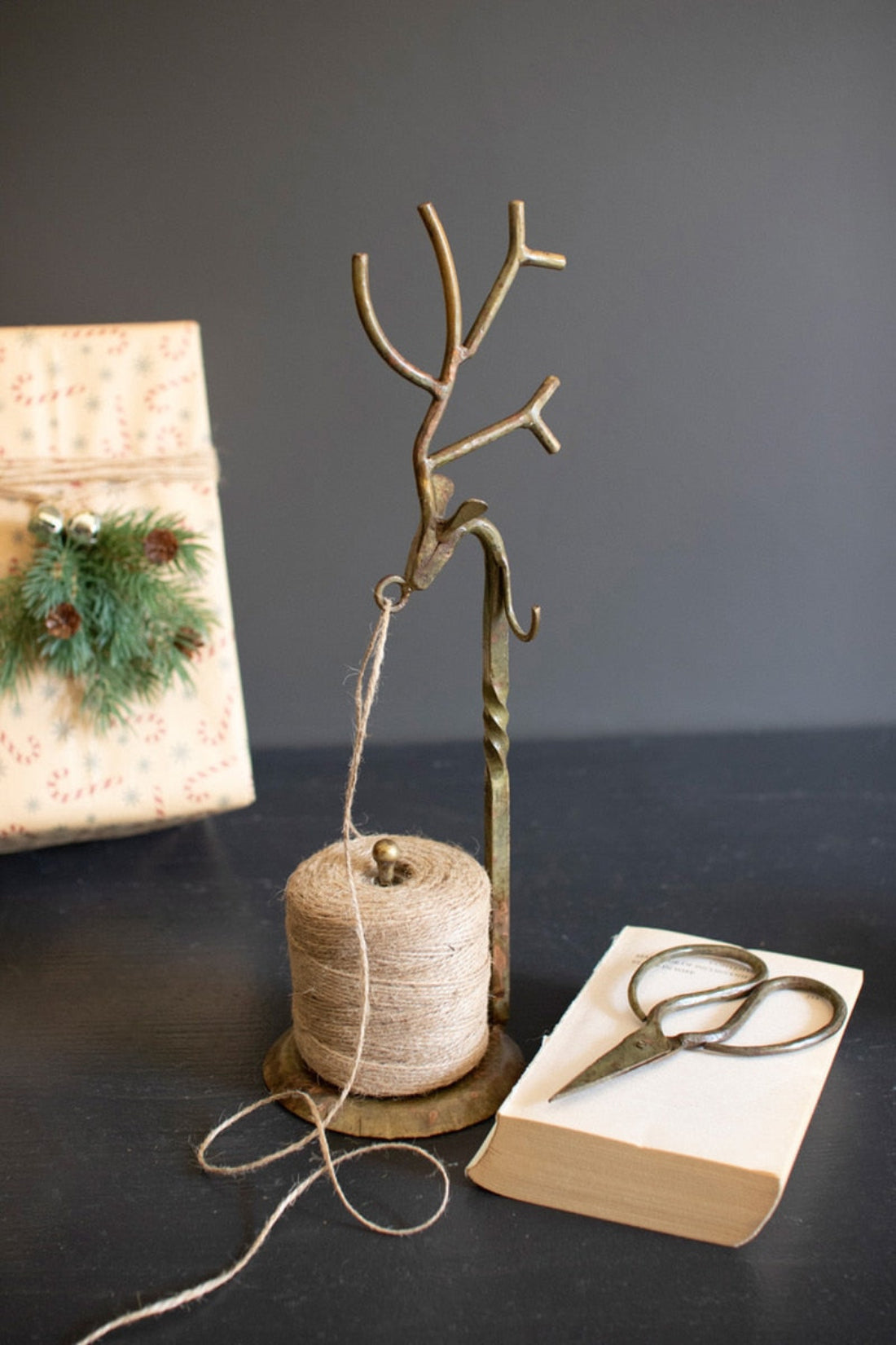 Forged Iron Deer Jute Holder – Decorative Gold Metal Accent (14") by Kalalou