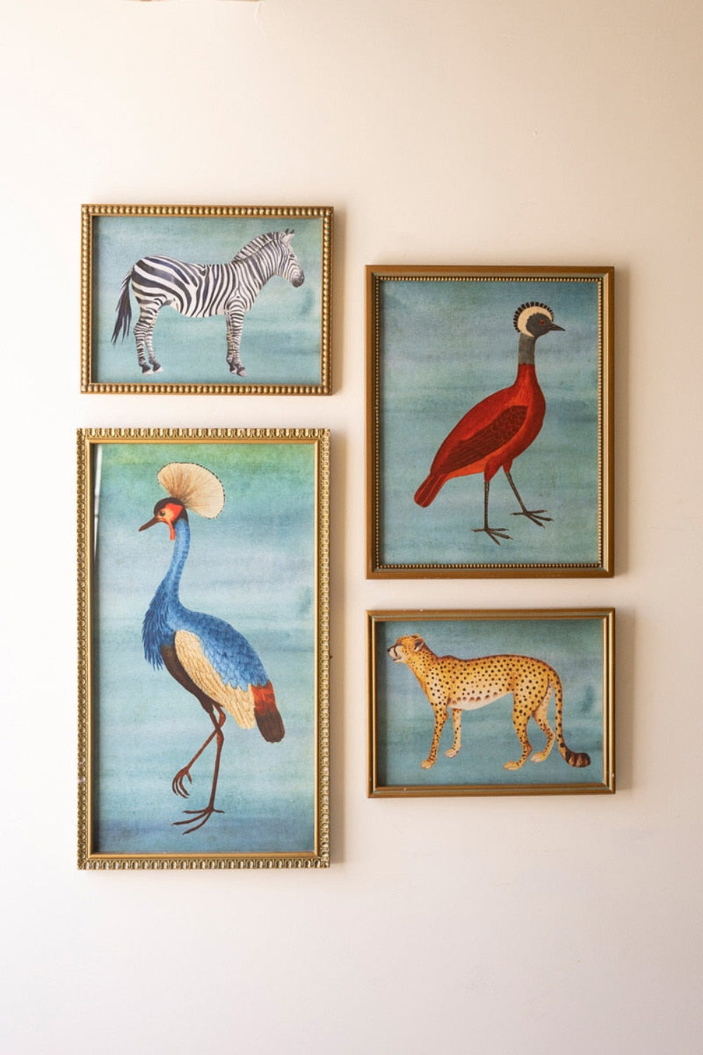 Framed Animal and Bird Wall Art Prints Set of 4 – Large to Small 27.5" Tall by Kalalou