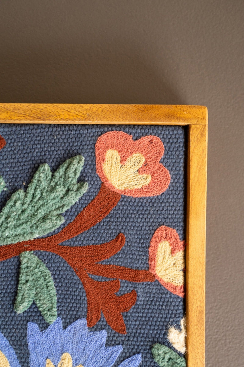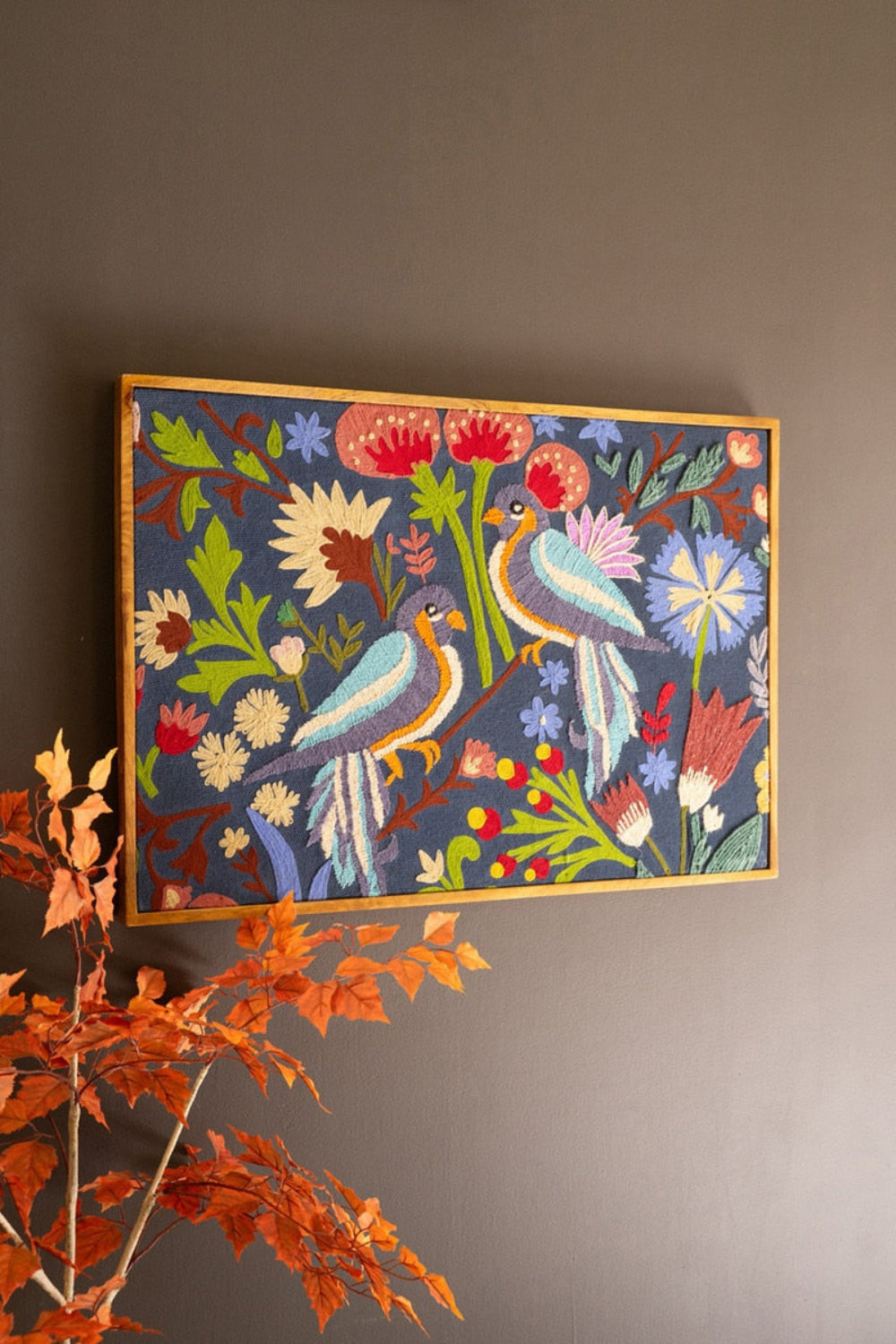 Framed Hand Hooked Wall Art – Birds and Flowers, 28" Tall, Yarn & Cotton on Wood Frame, Multicolor Finish By Kalalou