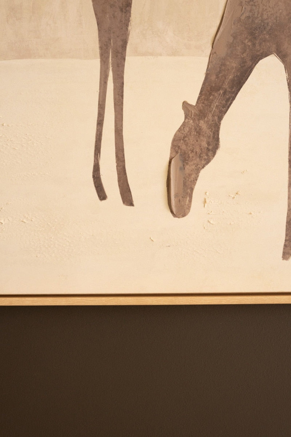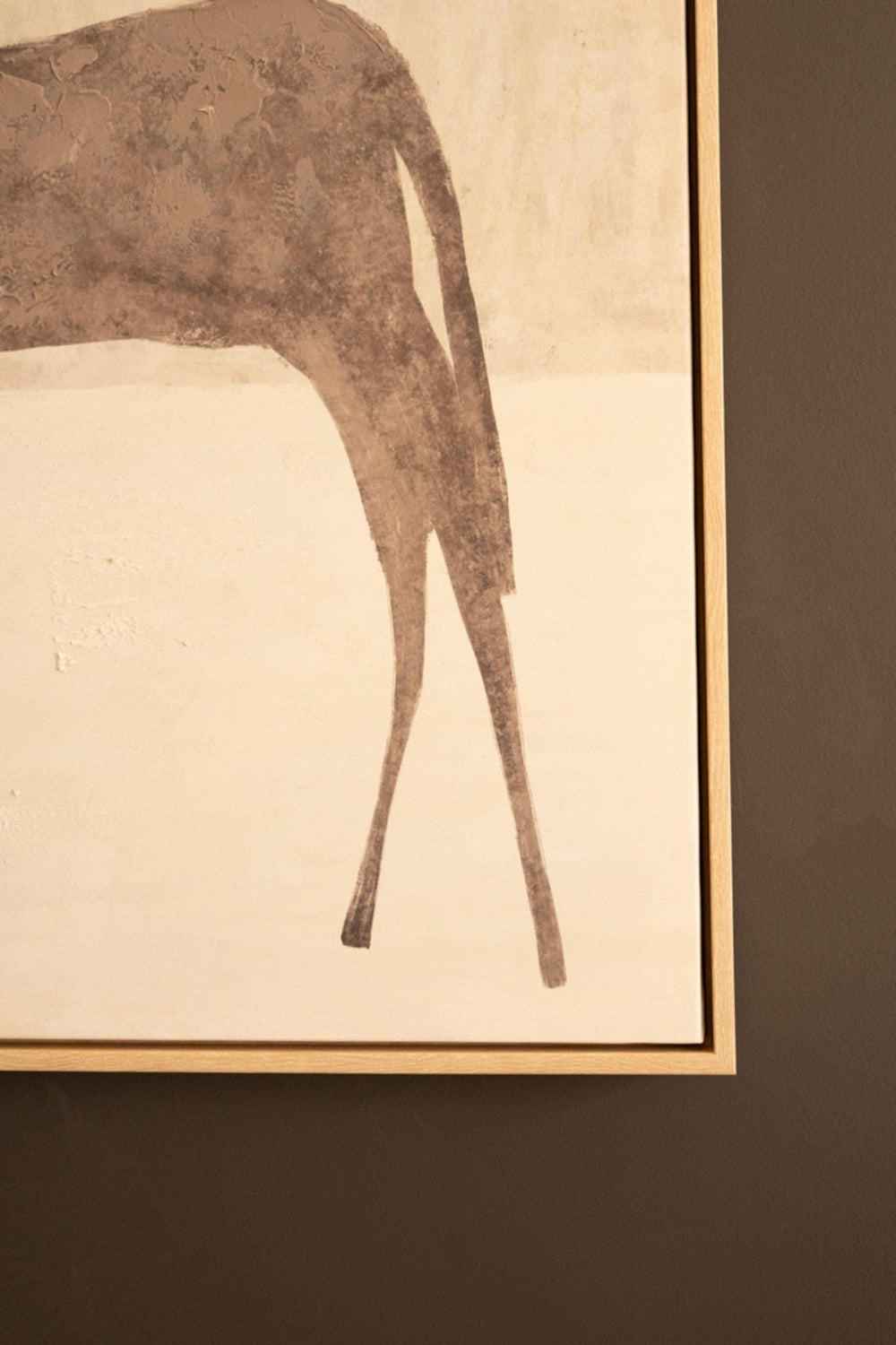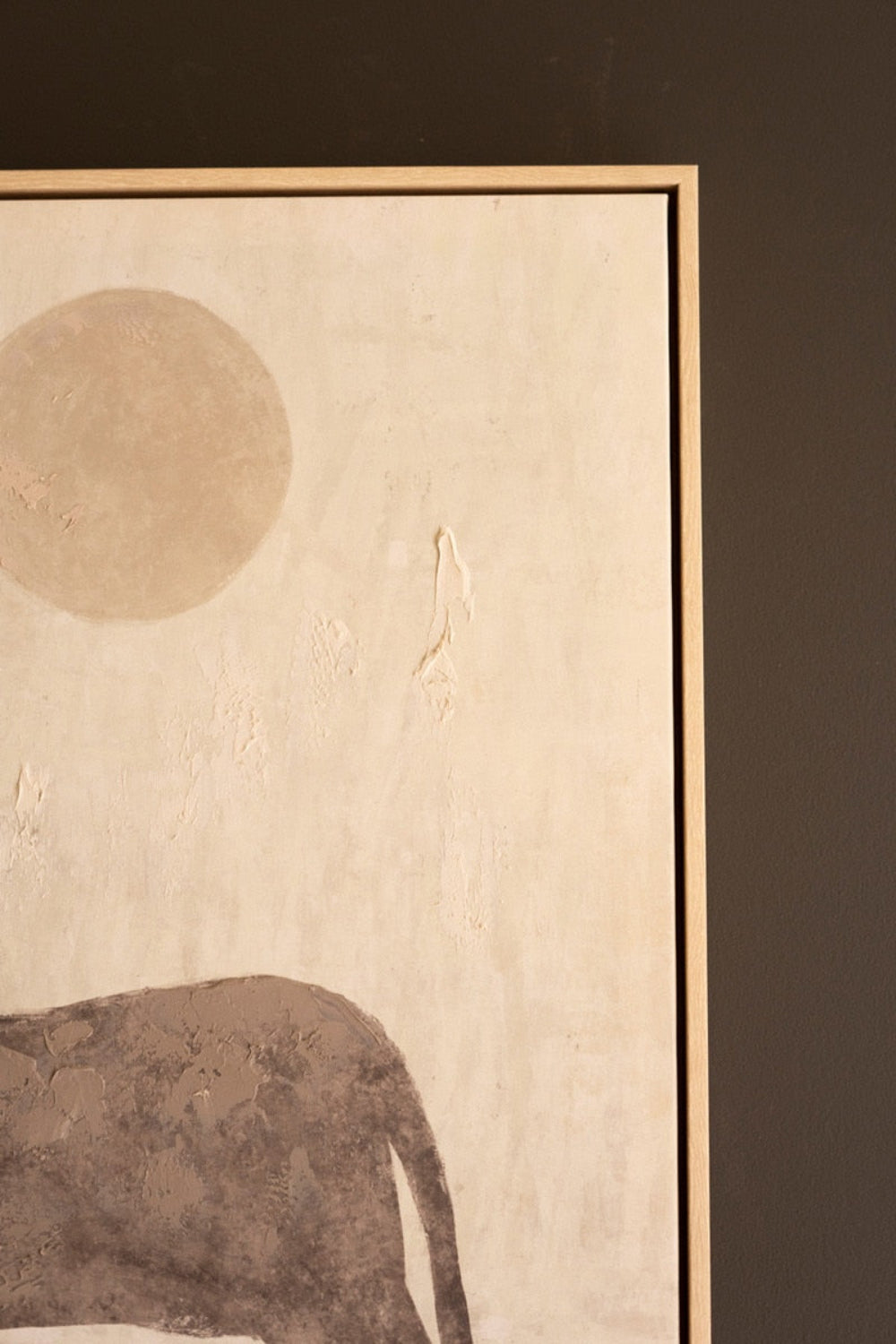 The Framed Painting Two Horses with Sun adds warmth and character to your wall décor through bold imagery and balanced composition. Featuring two horses set against a radiant sun, this artwork brings movement and natural beauty into your space. The wide horizontal layout works well above sofas, sideboards, or beds, while the framed construction provides a finished, gallery-inspired look. Measuring approximately 43" W x 2" D x 31.5" H, this piece fills larger wall areas with ease and pairs beautifully with western, rustic, farmhouse, and modern interiors. Designed for indoor decorative use by Kalalou.
