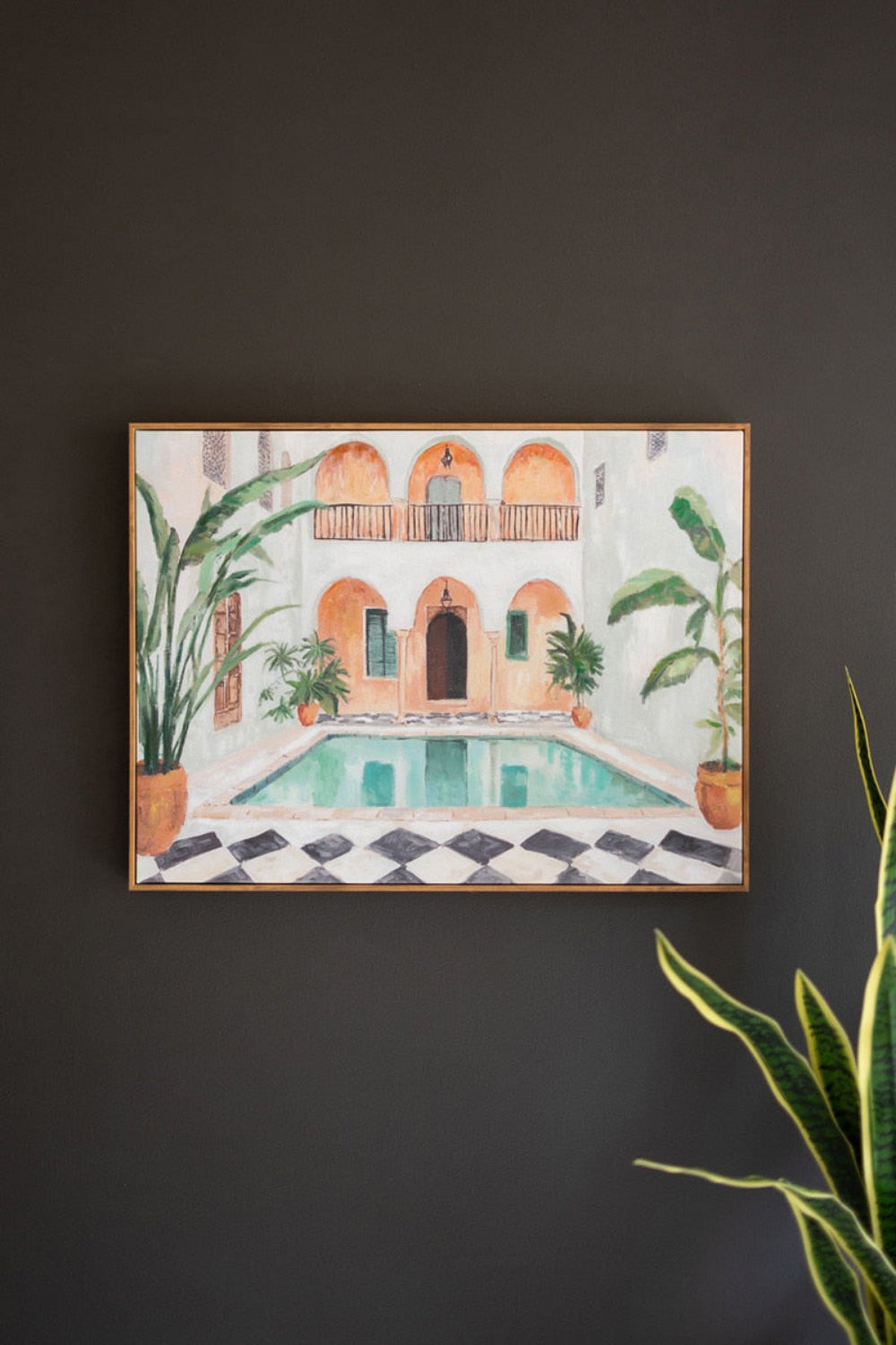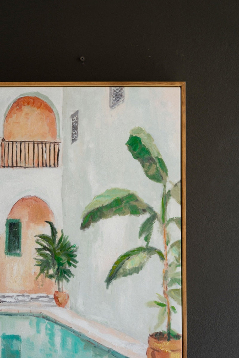 - Multi-color Morocco hotel painting on canvas with protective glass