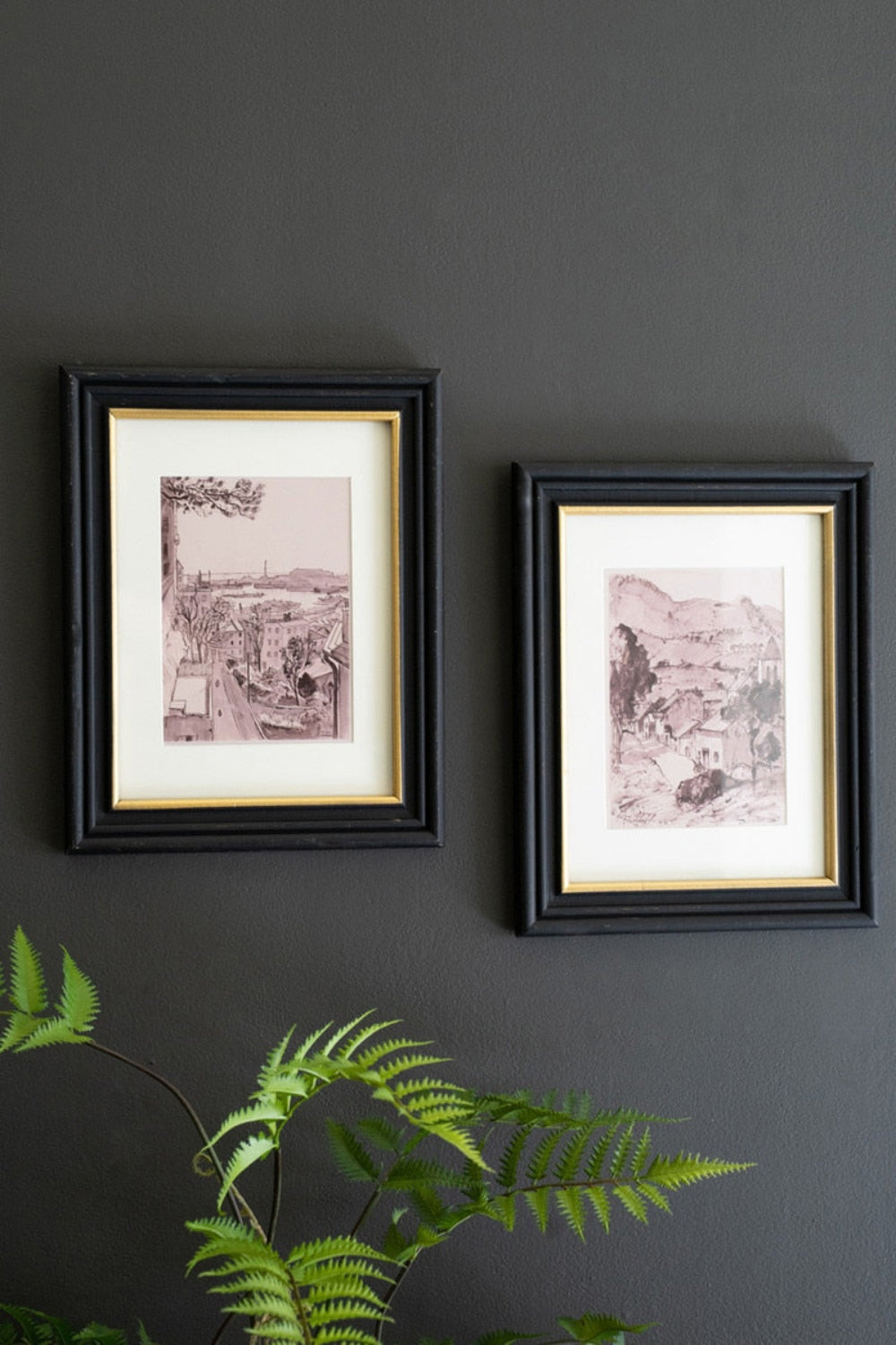 Framed Town Prints Under Glass – 14" Tall Wall Art Set of 2 by Kalalou