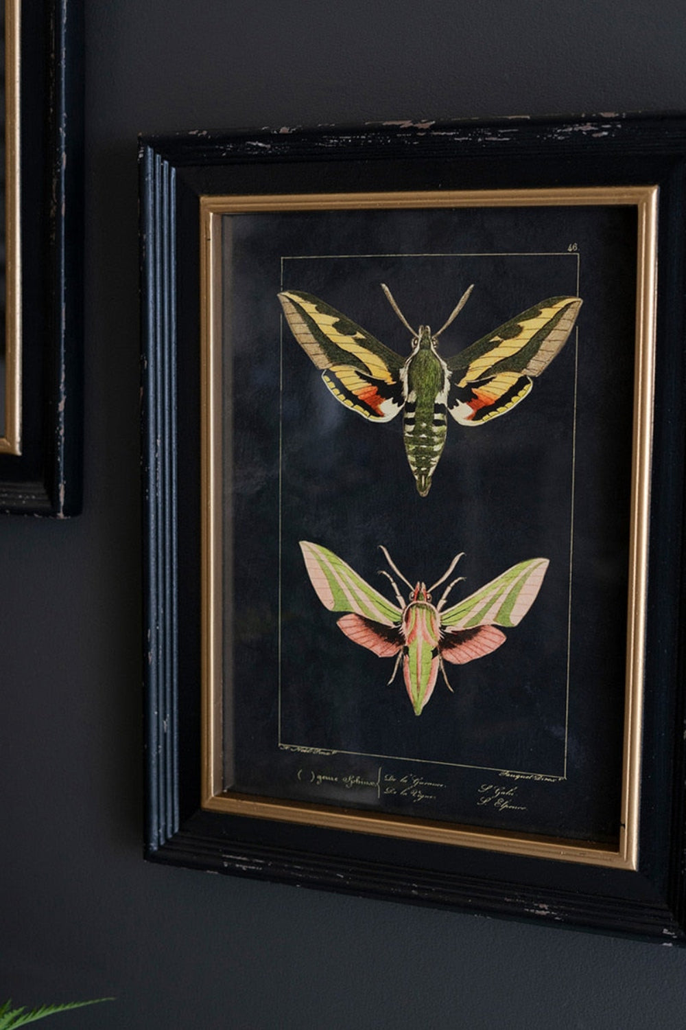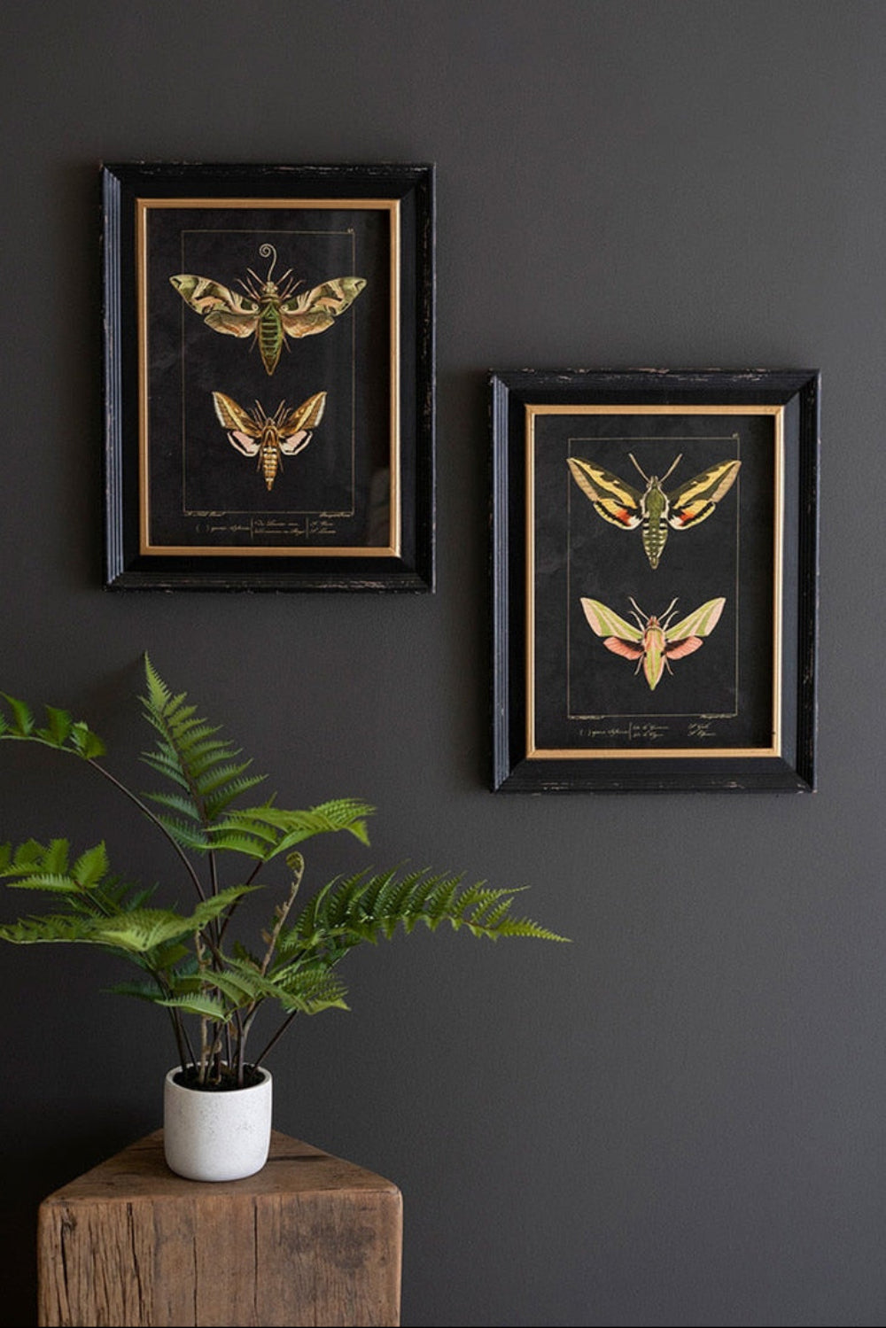 Framed Wall Art, Moth Prints Under Glass 18"H – Black Framed Insect Art, Set of Two by Kalalou
