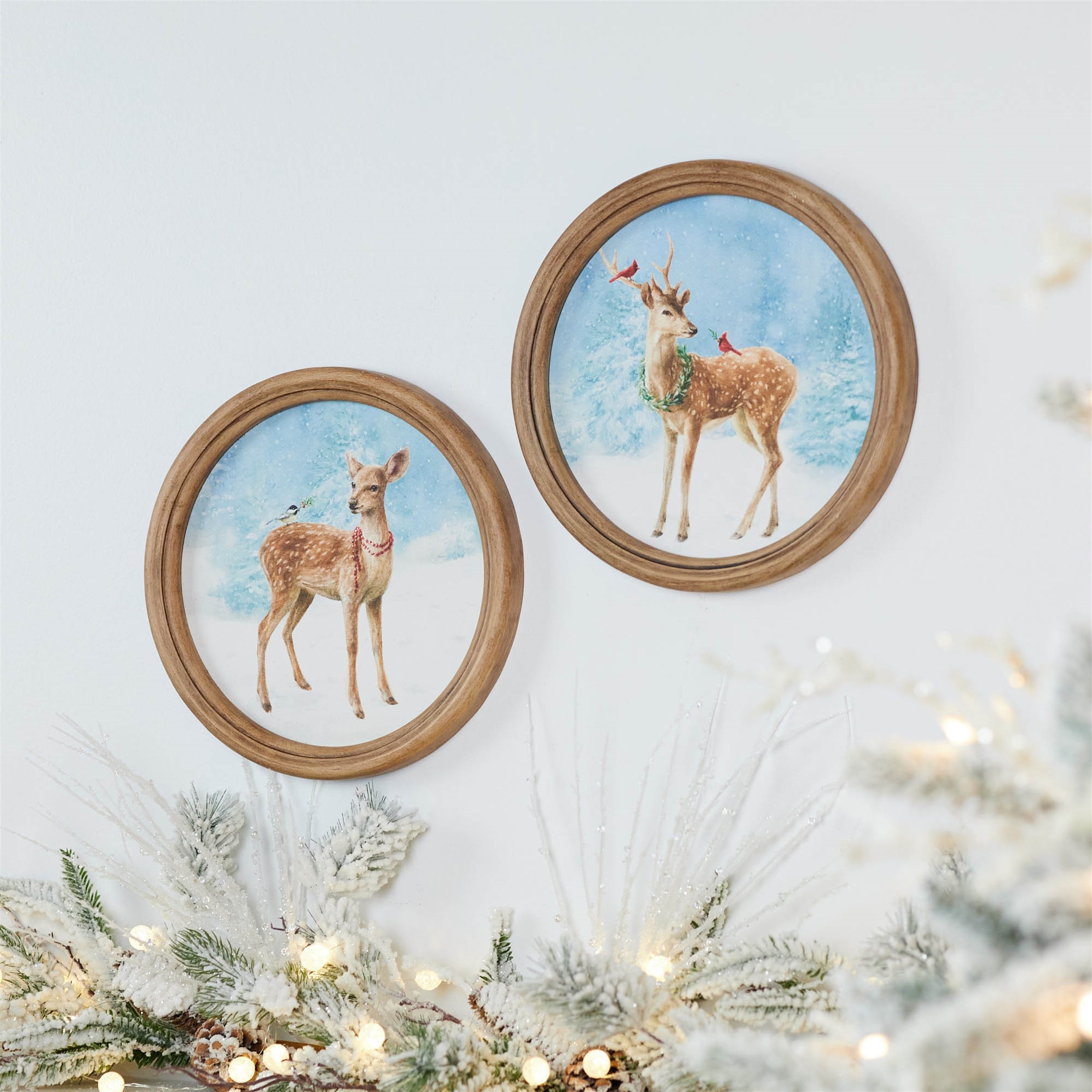 - Illustrated deer artwork with winter woodland scenes