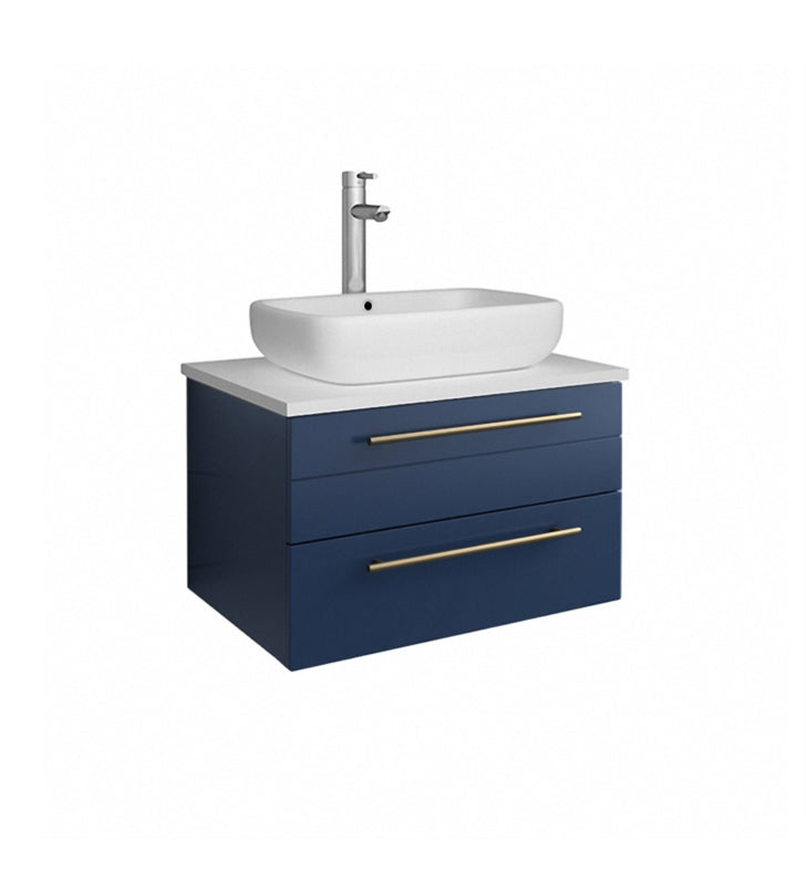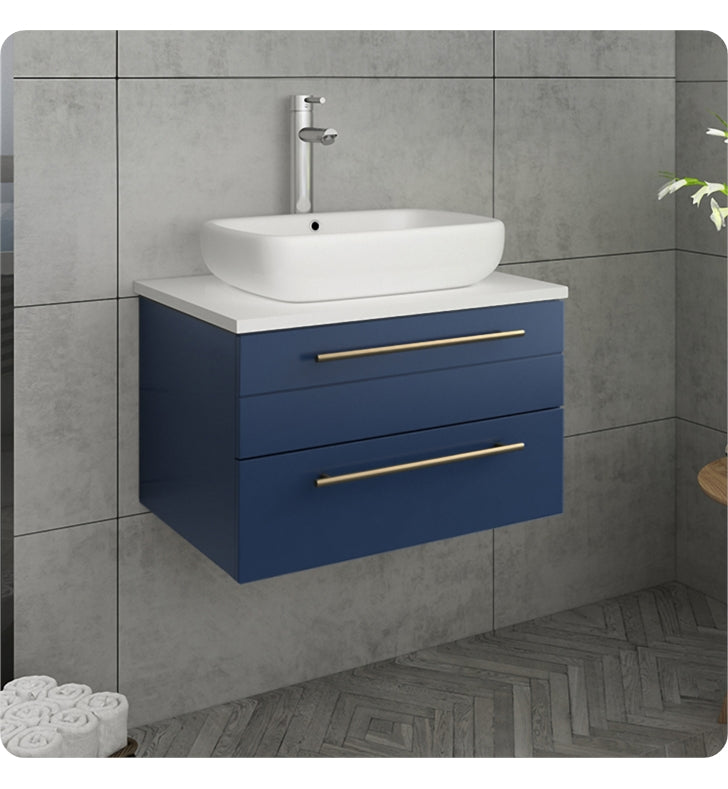 Fresca Lucera 24" Royal Blue Wall Hung Modern Bathroom Cabinet w/ Top & Vessel Sink