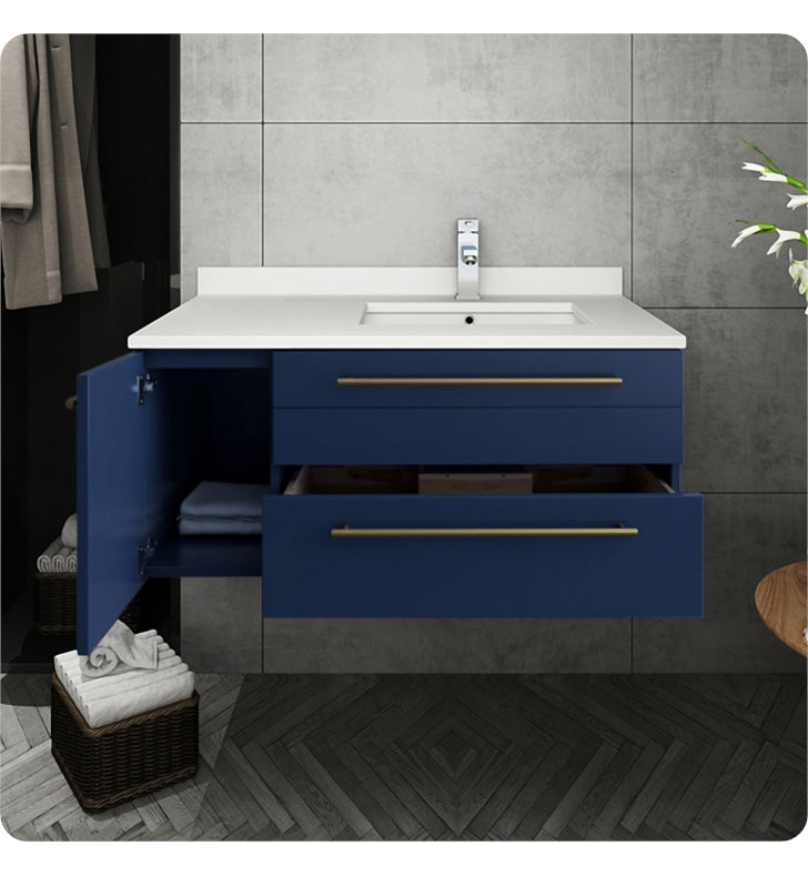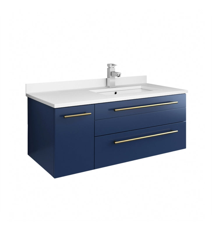 Fresca Lucera 36" Royal Blue Wall Hung Modern Bathroom Cabinet w/ Top & Undermount Sink - Right Version
