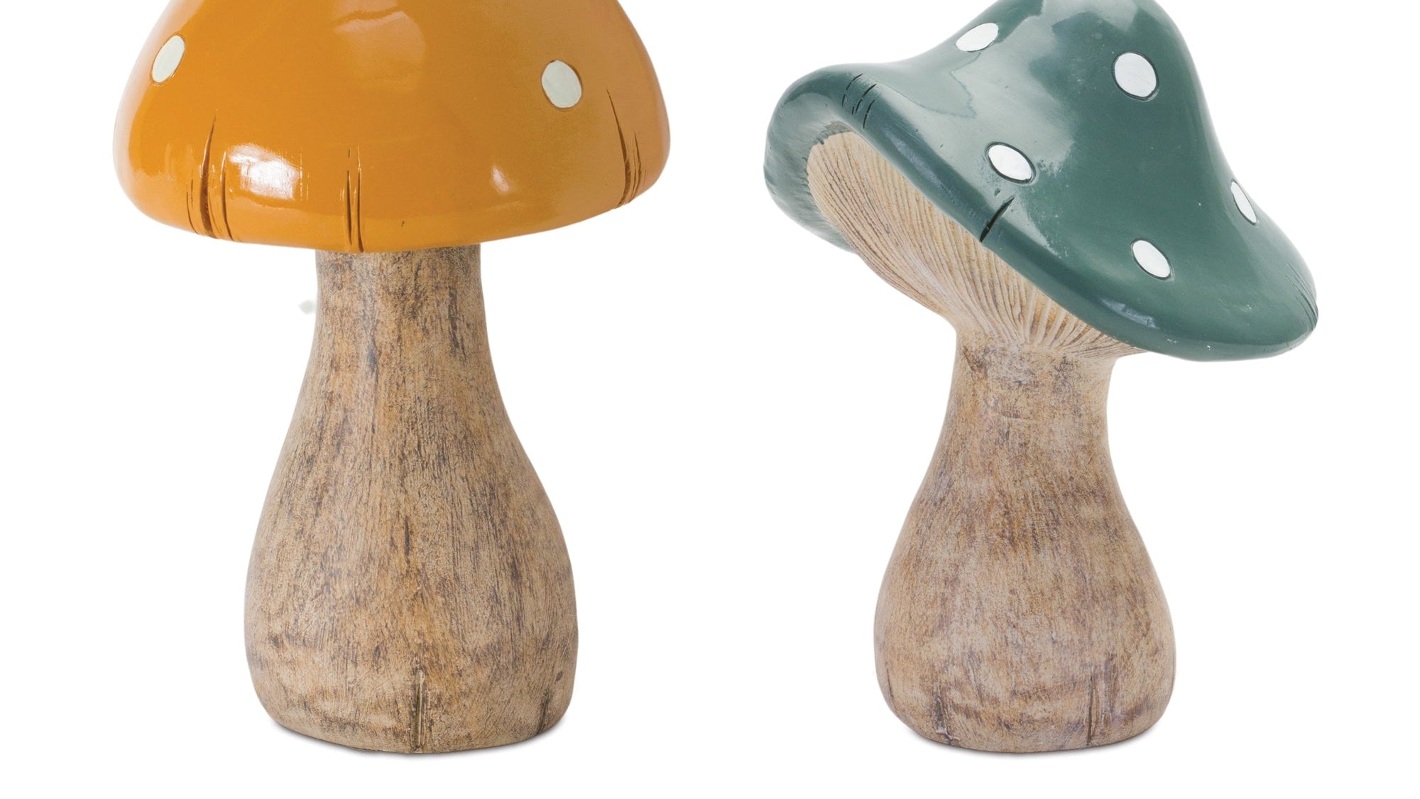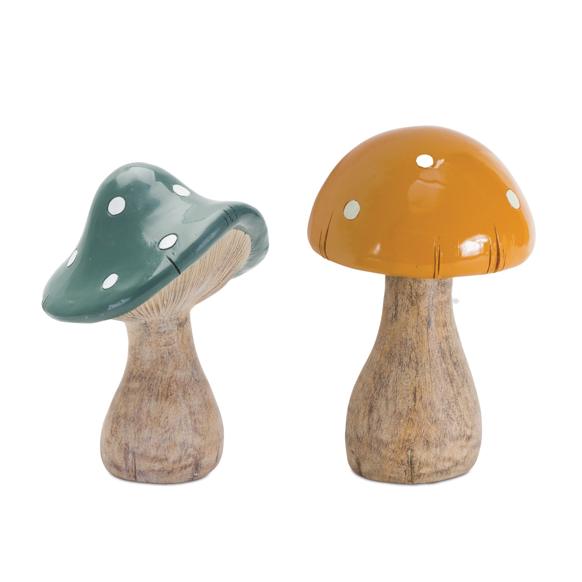 Bring a playful, nature-inspired touch to your indoor or covered outdoor spaces with this Garden Mushroom Decor Set. Crafted from durable polyresin, this set of two mushrooms features vibrant green and brown tones with whimsical dotted tops and realistic wood grain stems. Designed to add a fairy-tale charm, these mushrooms are perfect for fairy gardens, plant displays, or as standalone decorative accents. Standing 8 and 7.25 inches tall, they create a balanced and eye-catching arrangement in any room. Durable and lightweight, these whimsical mushrooms provide long-lasting style while adding a modern, earthy vibe to your home décor. Enhance your space with this charming, magical set today.
