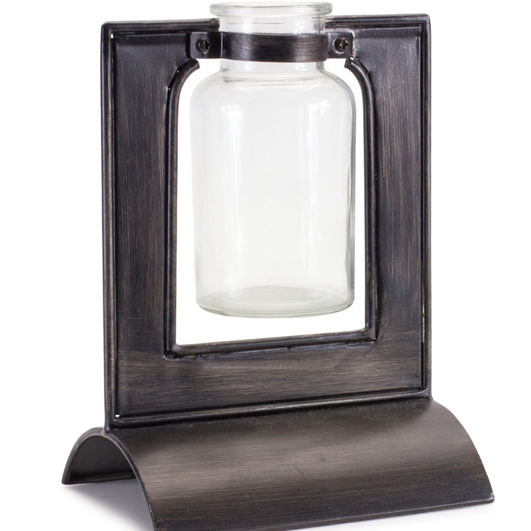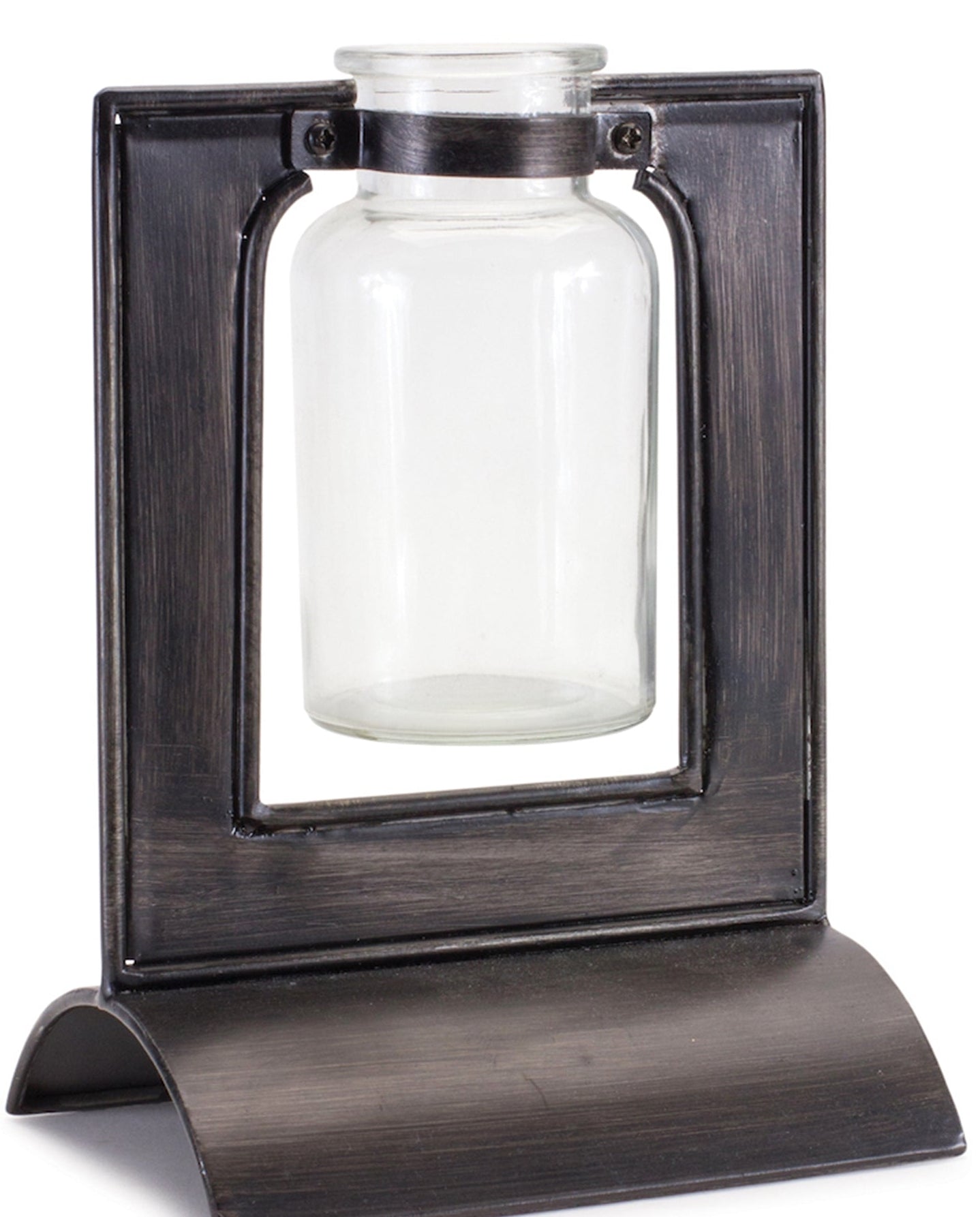 Glass Bottle Vase in Metal Holder 8"H Black Iron and Glass Decorative Vase by Melrose