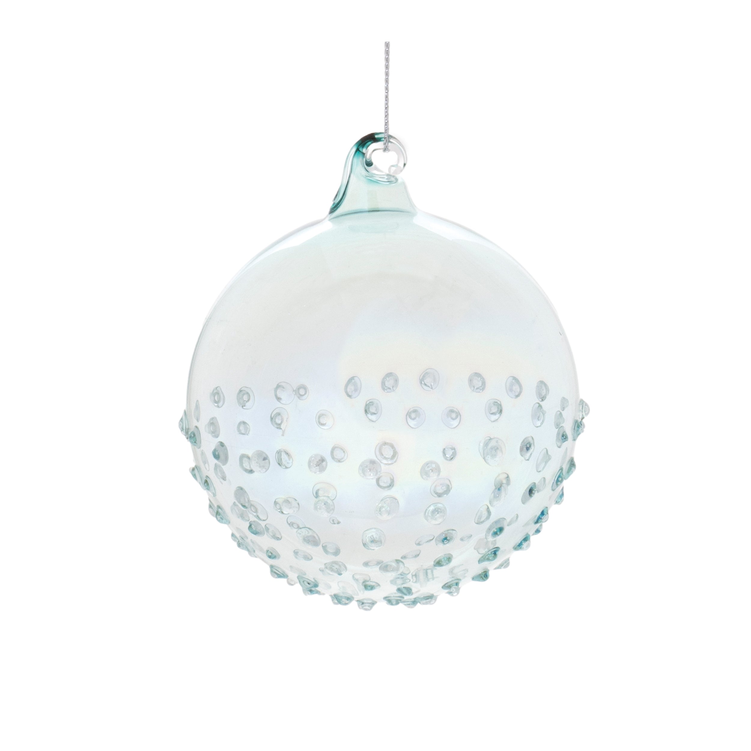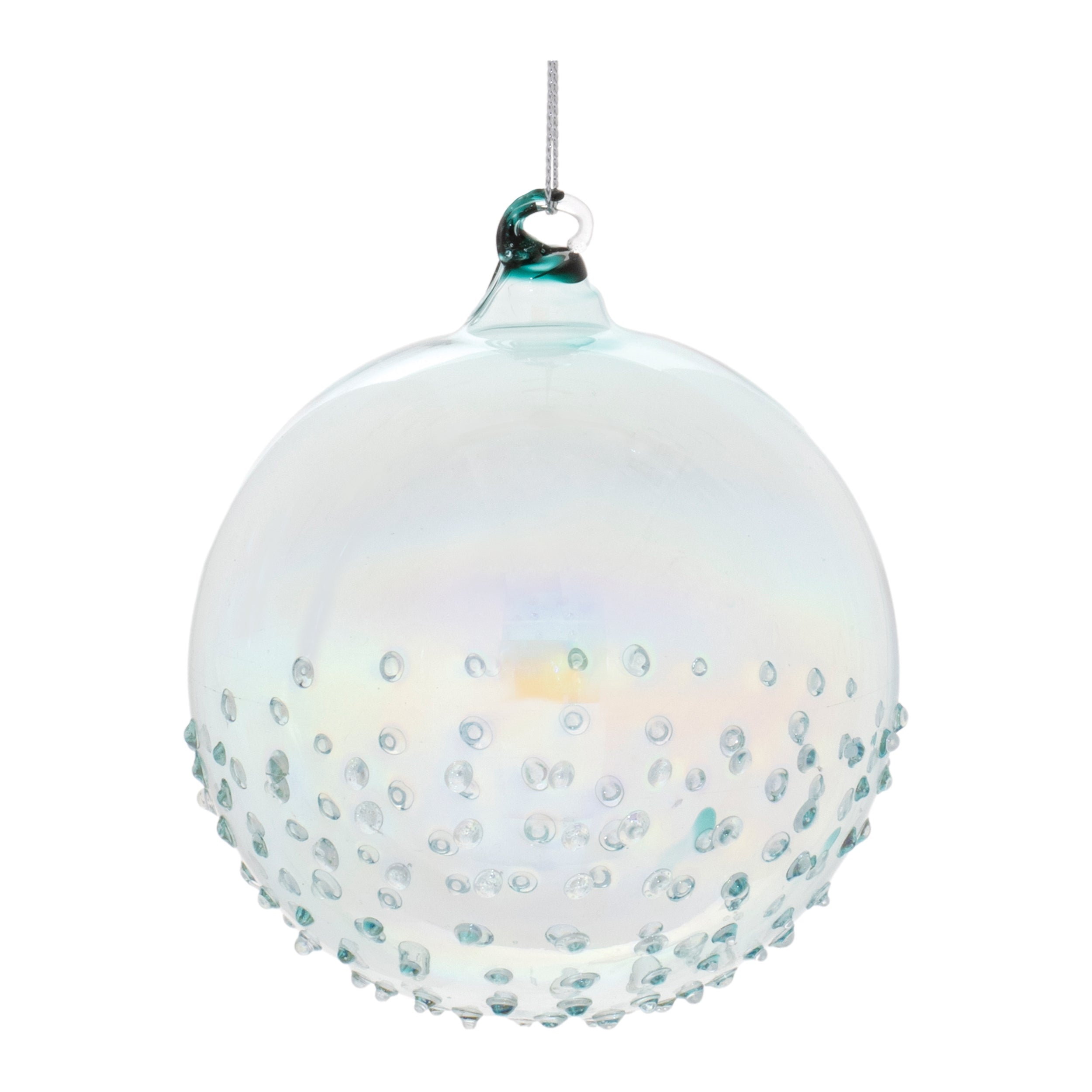Bring modern elegance to your holiday décor with this set of iridescent glass ball ornaments. Featuring soft wintry blue tones and a shimmering finish, each ornament enhances the traditional round shape with subtle textured accents. Measuring up to approximately 4 inches in diameter, these ornaments add depth and sophistication to Christmas trees, wreaths, and garlands.