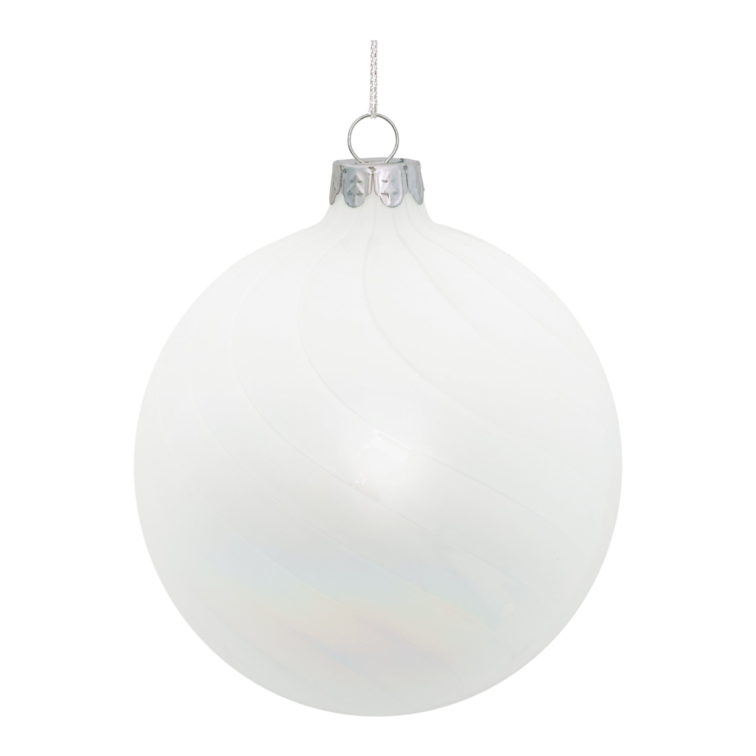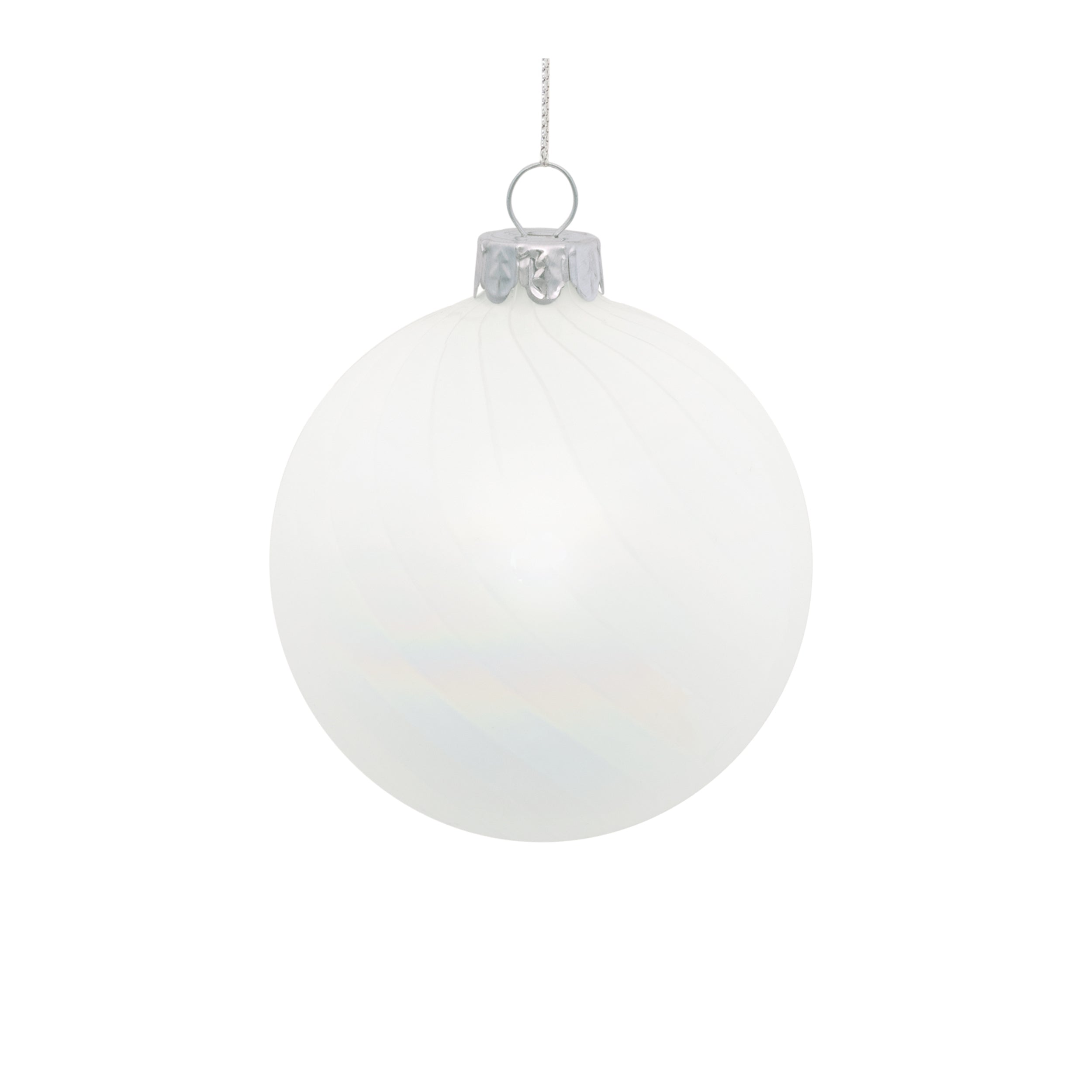 Glass Ornament 4"D White Iridescent Ribbed Christmas Decor Set of 12