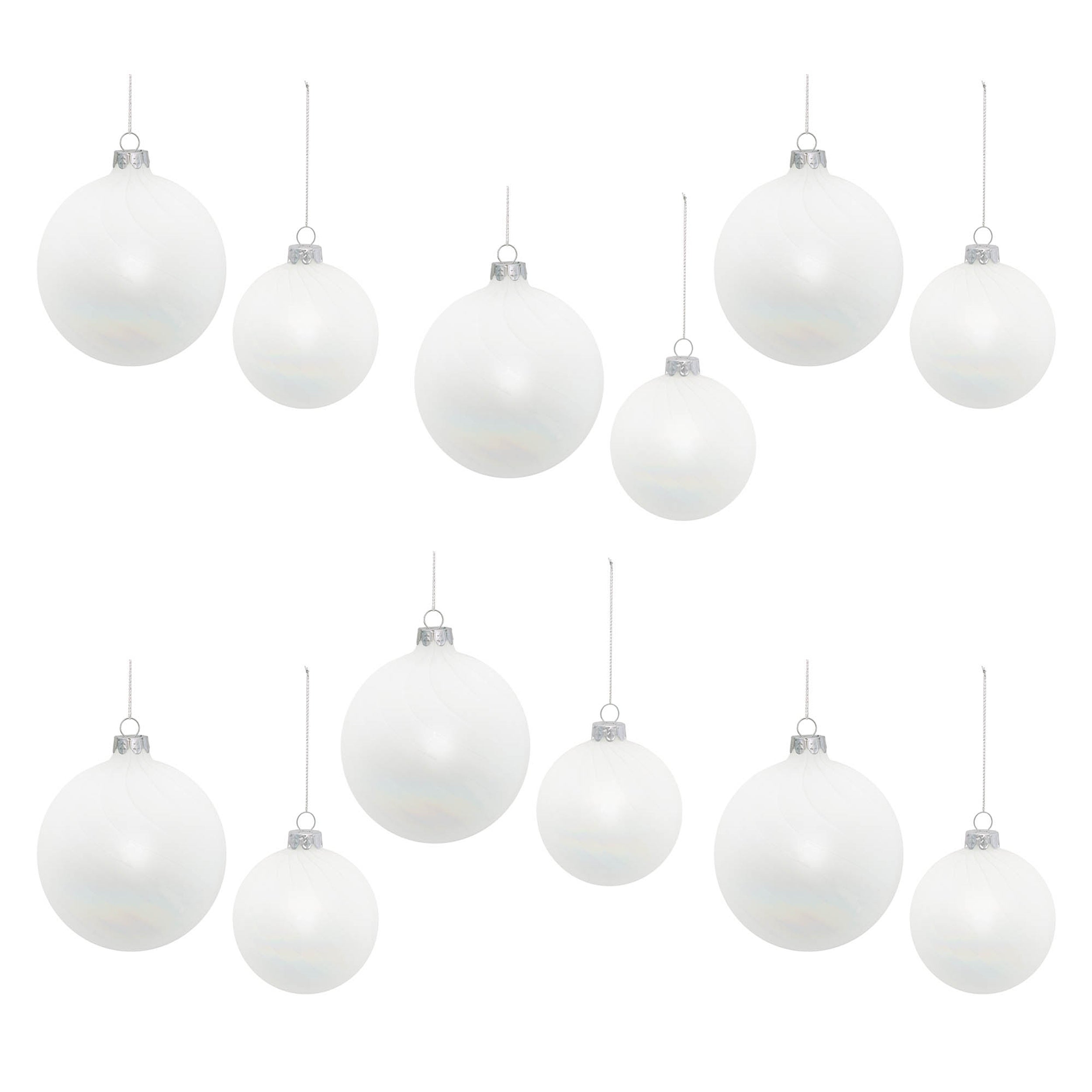 White Iridescent Glass Christmas Ornaments – Set of 12