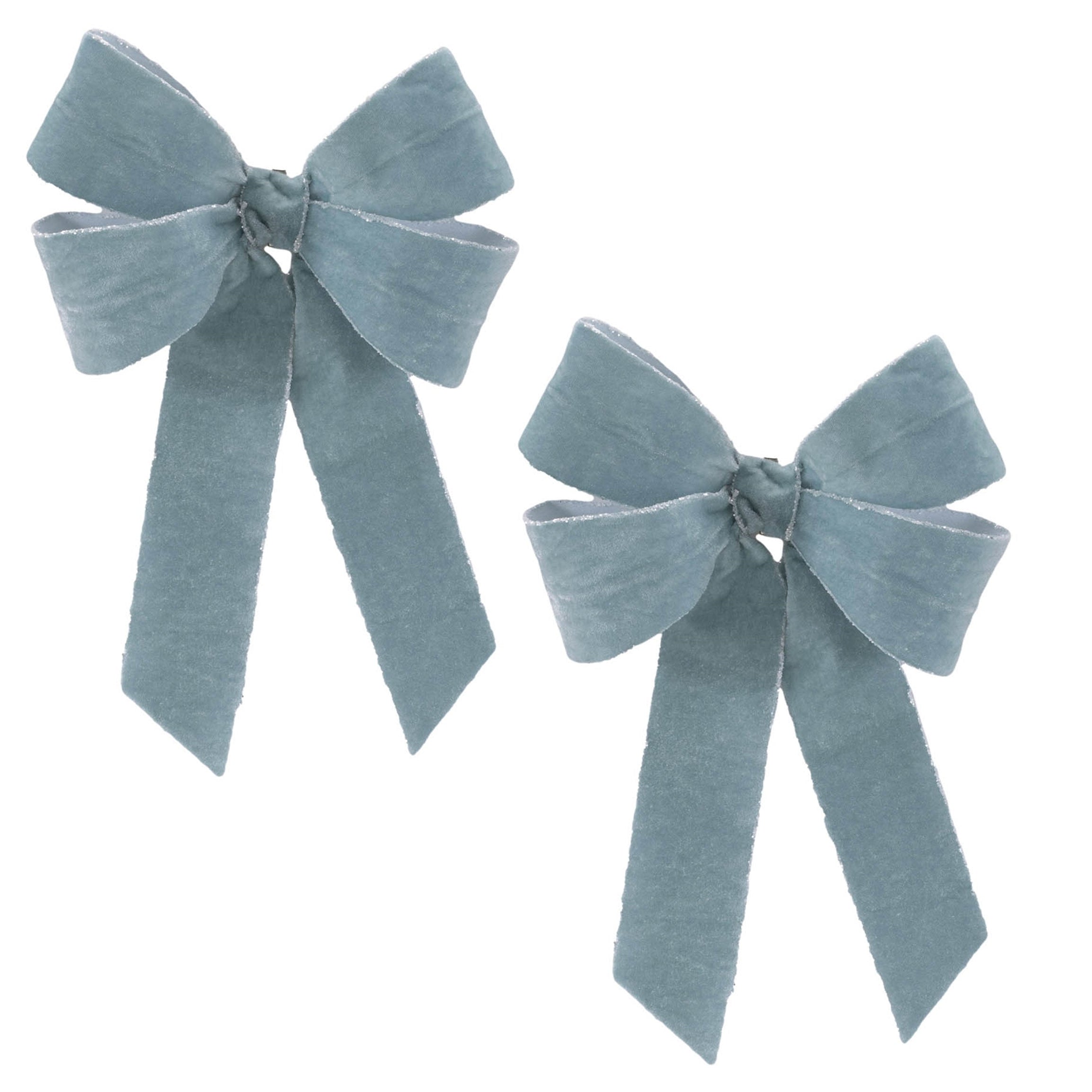 Glittered Double Holiday Bow (Set of 2) – 15"H Blue Polyester Christmas Tree and Wreath Decor by Melrose