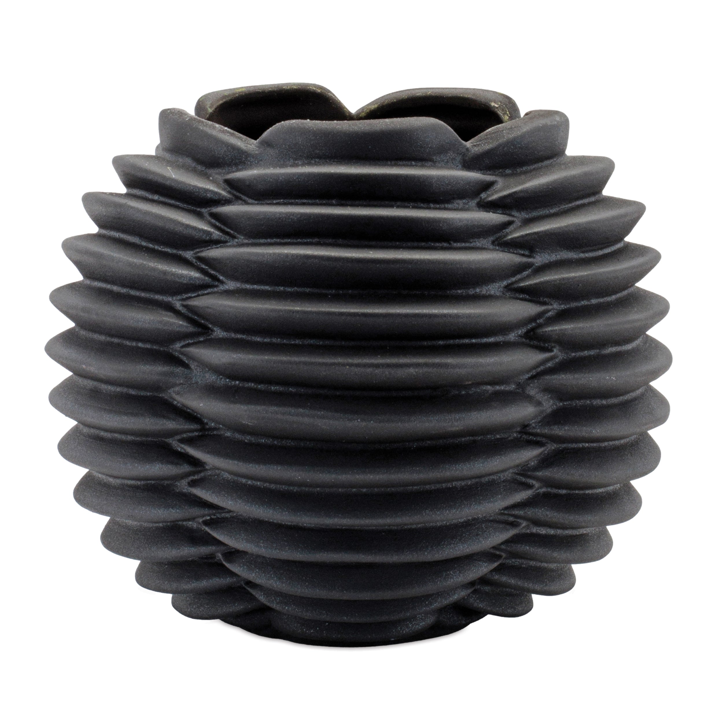 Gray Ribbed Ceramic Container 7D, Modern Planter and Decorative Accent By Melrose