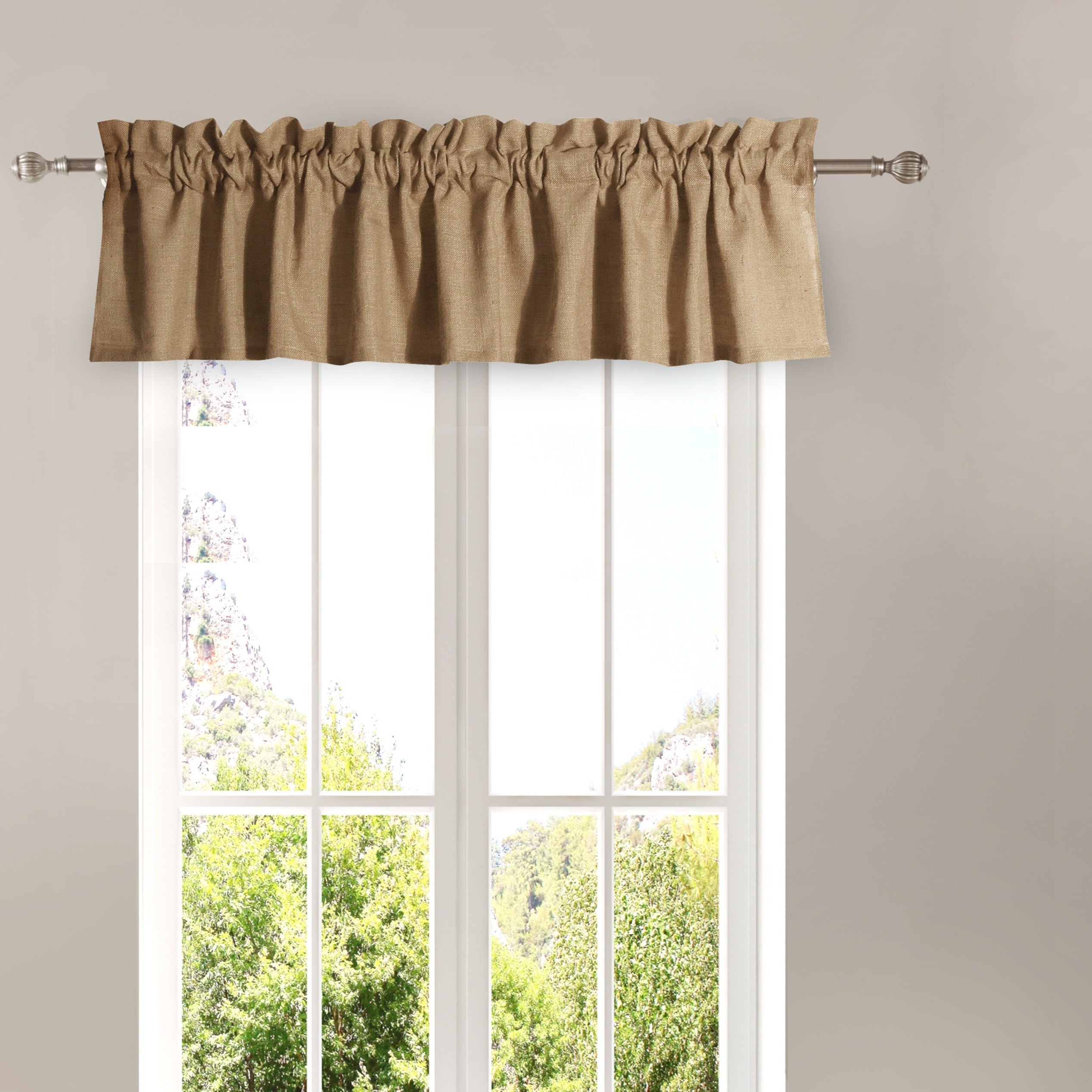 Bring a more natural, organic vibe to your bedroom with a rustic burlap window valance . In natural colors and made from 100% burlap, each valance features a 3`` rod pocket for hanging. Additional features include 14-inch drop length, plus a 2-inch header. Dimensions 84-inches wide x 14 inches of drop length, plus 2-inch header. Bring warm rustic style to your windows with the Greenland Home Burlap Natural Valance. Measuring 84 x 14 inches, this window topper adds a touch of farmhouse elegance to kitchens, dining rooms, or living spaces. Crafted from textured natural burlap fabric, it filters light softly while creating a cozy, relaxed atmosphere. Its simple yet refined look makes it a versatile choice for country, cottage, or farmhouse-inspired interiors. Pair it with coordinating curtains or use it alone as a stylish statement piece.