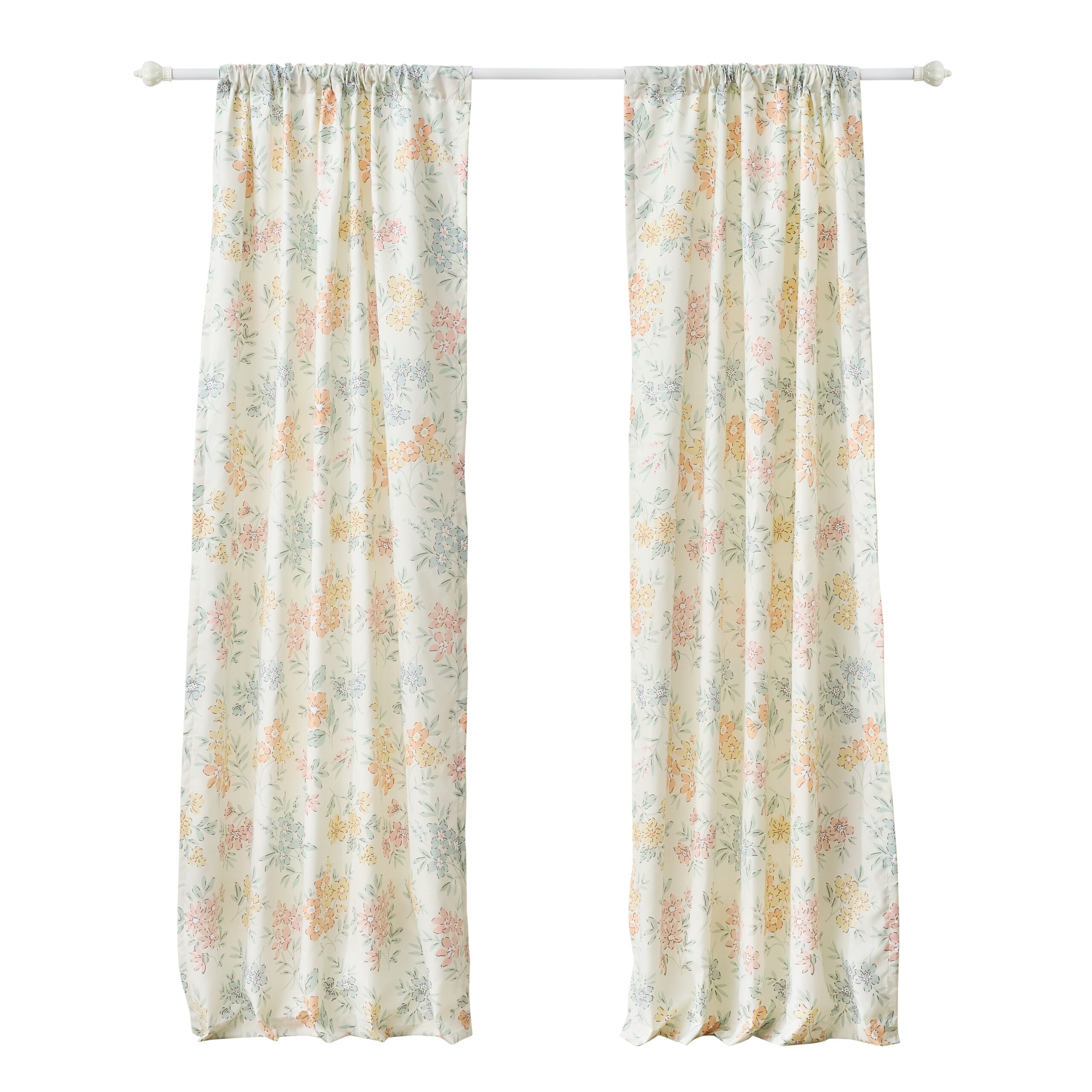 Add a touch of elegance and warmth to any room with the Chloe floral window panel pair. Showcasing a delicate pastel floral print, this curtain set brings timeless charm and softness to your décor. The panels are lined with a solid color backing, enhancing privacy while gently filtering light for a serene ambiance.