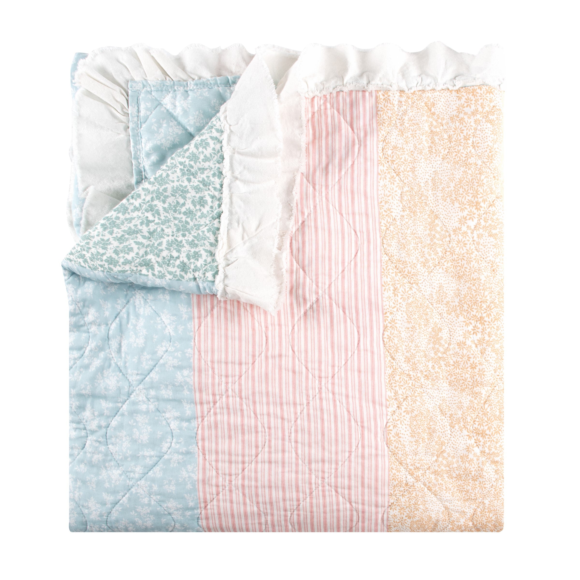 Embrace the charm of timeless elegance with our Tessie Ruffle throw blanket, a perfect addition to any room for a touch of feminine grace. This exquisite throw features soft pastel colors and delicate ruffled borders that create a cozy, inviting ambiance. Quilted for durability, loft, and surface interest, Tessie ensures a harmonious and stylish look that will make your any room a serene retreat.