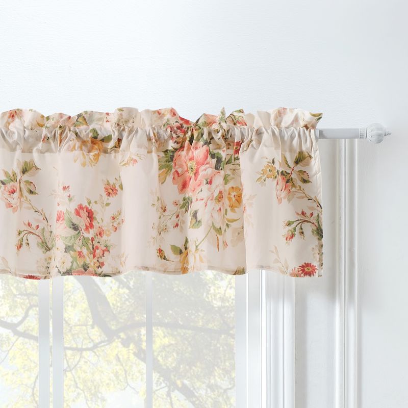 Introducing the Grace window treatment, a masterpiece of style that transforms any room into a serene oasis. Crafted with meticulous attention to detail, Grace brings nature's beauty into your home. The Grace window valance includes one lined, light-filtering, semi-sheer 84-inch wide valance, featuring a 3-inch rod pocket along the top for easy hanging using common curtain rods. The Grace valance effortlessly elevates your interior decor. Embrace beauty and enhance your space with Grace.