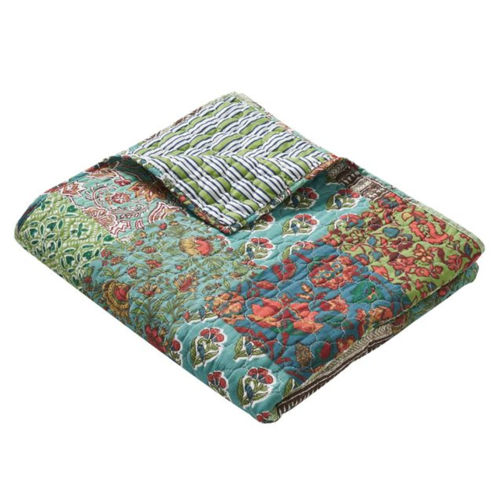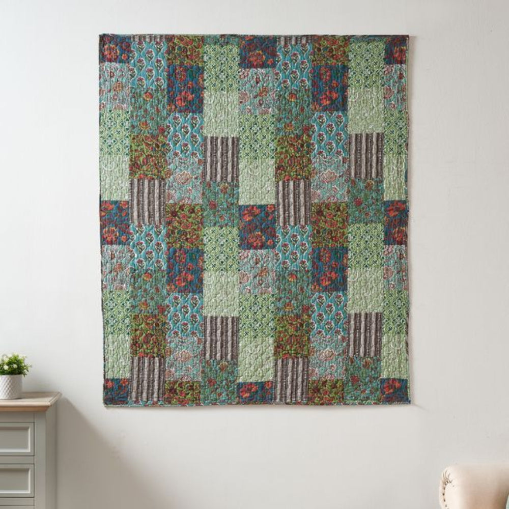Refresh your outdoor or indoor lounging space with the Jasmin Jade Throw by Greenland Home Fashions. Measuring 50" x 60", this versatile throw is perfect for your cabana, sun chaise, or as a decorative layer on sofas and beds. The soft cotton face and back provide a breathable, comfortable feel, while the cozy 60% cotton and 40% polyester fill adds lightweight warmth. Reversible with a complementary print on the reverse, this throw offers two styling options in one, making it a practical and chic accent for any space. Fully machine washable, it’s easy to keep fresh and ready for relaxation.