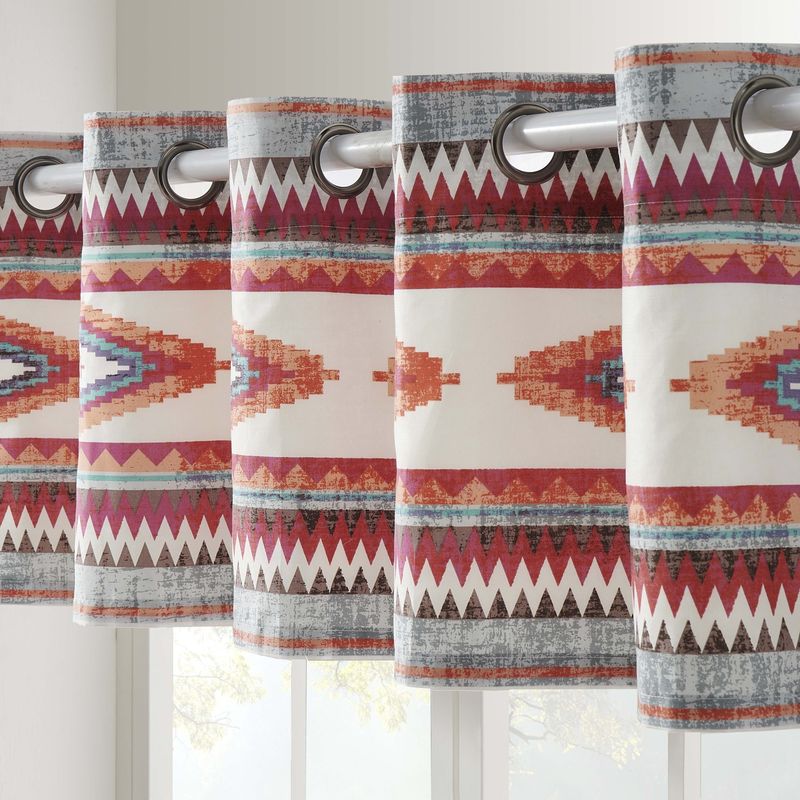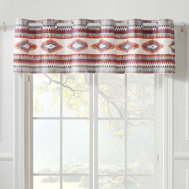 Summon the spirit of the Great Southwest with the Kiva collection from Greenland Home Fashions. Enhancing your Boho surroundings, Kiva features Native American art motifs in neutral colors to coordinate with a wide variety of interior décor themes. Distressed effect gives a rustic, stone washed appearance for relaxed, casual living. Lined with solid color fabric for increased privacy and sun protection, this extra-wide 84-inch valance fits just about any window in your home. Grommet design features bronze-finished metallic grommets along the top to accommodate most curtain rods for hanging. Grommet opening is 1.57 inches (40mm) in diameter. Dimensions: Each panel measures 84 inches wide x 16 inches long. Drop length does not include one inch of fabric above the grommets. 100% polyester face, back (2 ply). Machine washable. 100% brushed microfiber. Imported.