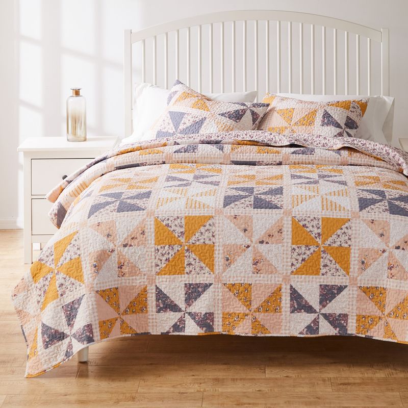 Pinwheel Posey 3-Piece Peach Quilt Set