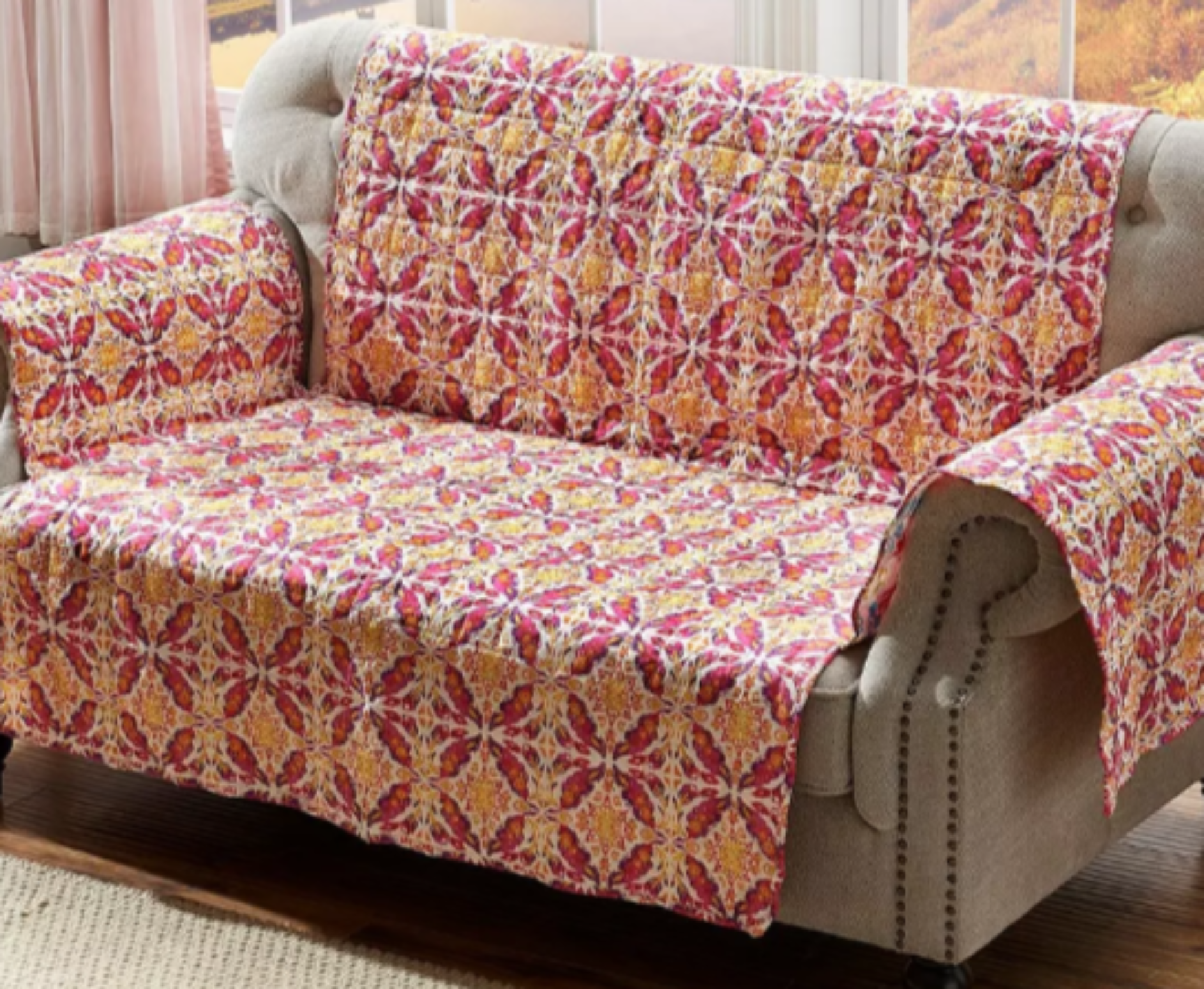 The Joanna’s furniture protectors feature artisan fabric prints inspired by hand-painted Moroccan tile art. These reversible covers feature elastic bands to hold the backs to your furniture cushions for two looks in one.Reversible for two distinctive looks, this quilted cover features a comfortable cotton-rich blend and flexible drape fit that makes styling effortless. Whether in your living room, sunroom, or reading nook, it transforms everyday furniture into a cozy, decorative focal point.