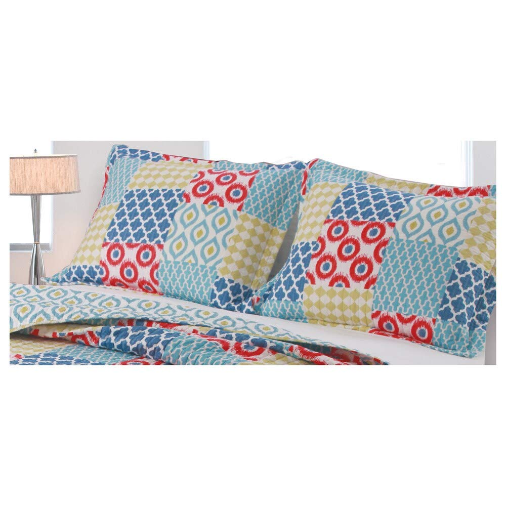 Greenland Home Fashions Kendall Pillow Sham – 100% Cotton, Multi-Pattern Patchwork, Reversible Design