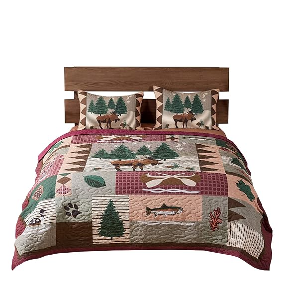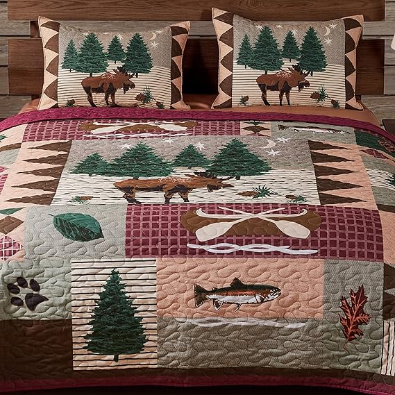 Greenland Home Moose Lodge Multi King Quilt Set, 3-Piece
