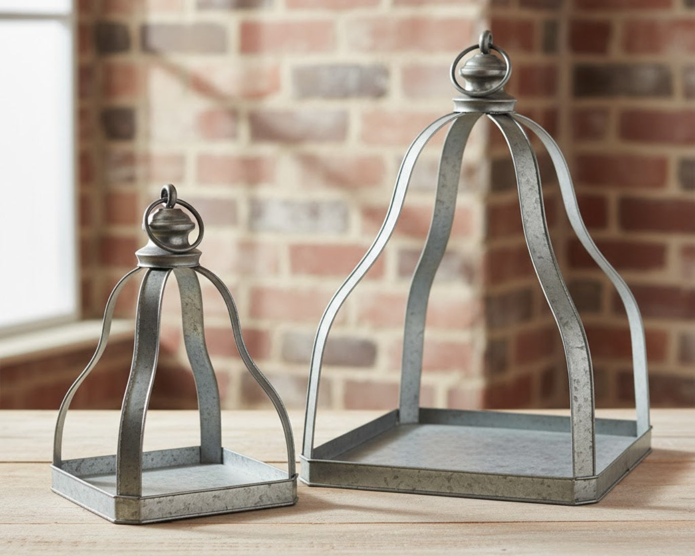 The Galvanized Metal Lantern with Open Design Set offers a rustic yet refined accent for any home. Crafted from durable metal with a grey and black galvanized finish, each lantern features an open-frame silhouette that adds depth and dimension to your décor. Ideal for styling on entry tables, mantels, or patios, these lanterns work beautifully with real wax or LED candles (sold separately). Designed for both indoor and covered outdoor spaces, they provide warm illumination and timeless charm throughout the seasons. The set includes two assorted sizes, allowing for a balanced, coordinated display that complements farmhouse, rustic, or transitional décor styles.