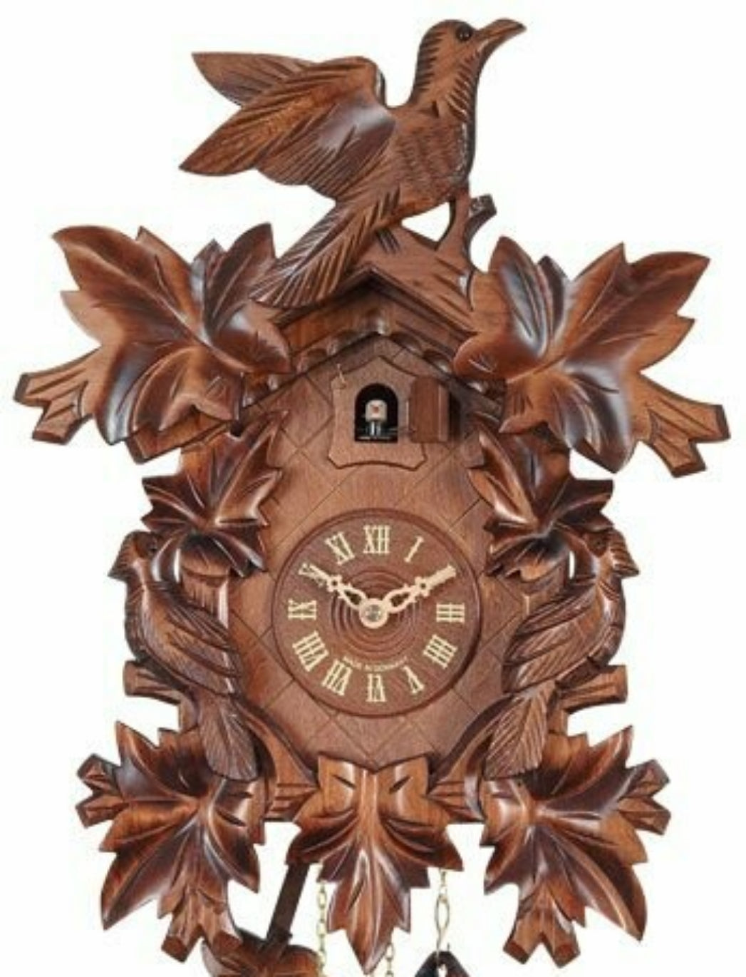 - Hand-carved wooden cuckoo bird, hands, and dial