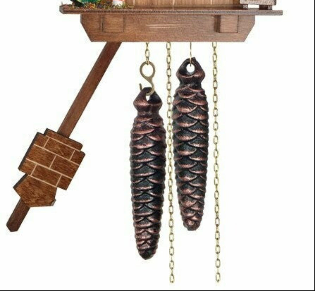 - Wind once per day using two cast iron pine cone weights