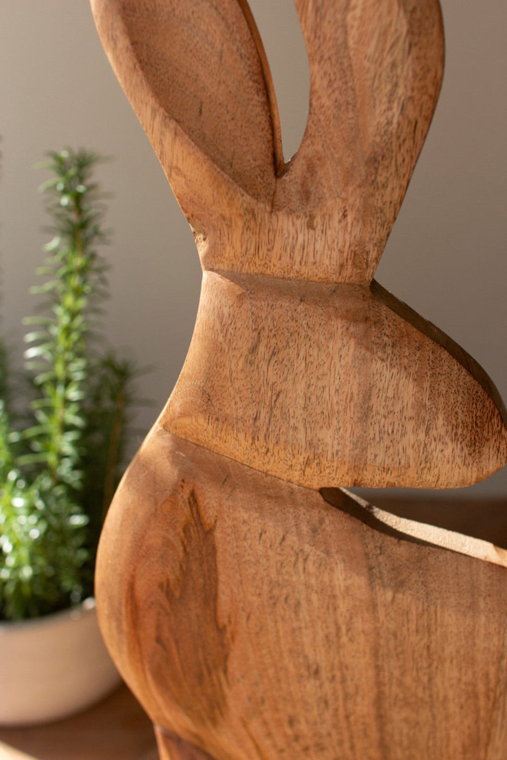 Hand-Carved Wooden Rabbit Figure – 28" Tall Rustic Accent by Kalalou