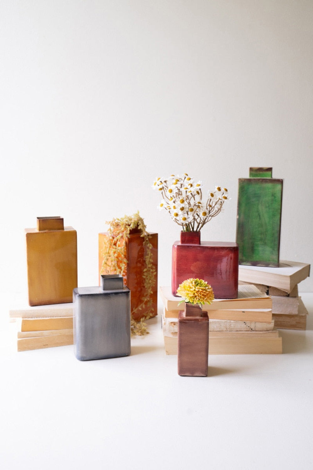 Handcrafted Painted Metal Vase Set of 6 – 9" Tall Decorative Home Accents by Kalalou