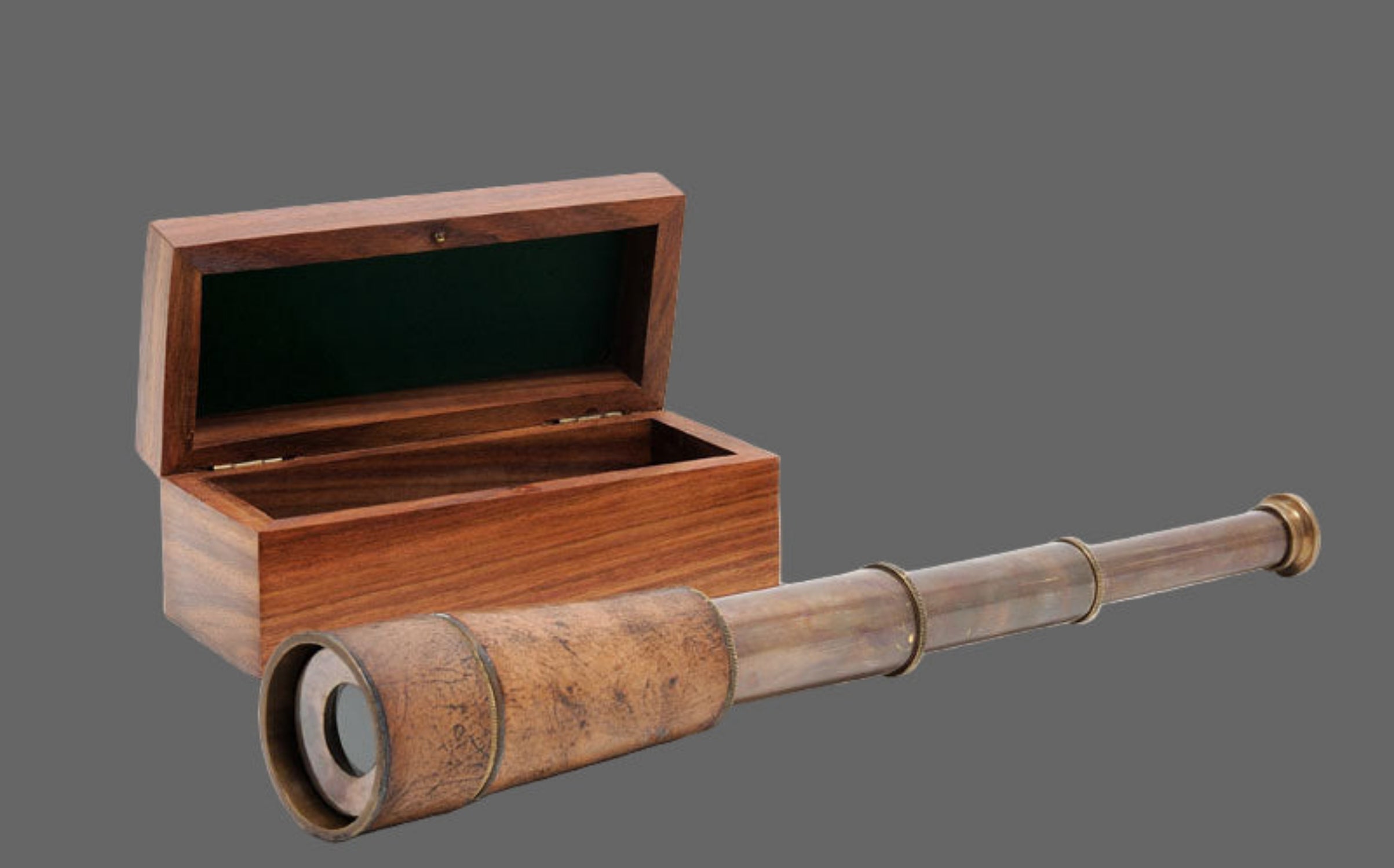 Handheld Telescope – Brass With Brown Leather – 16 Inch Nautical Decor By Old Modern Handicrafts