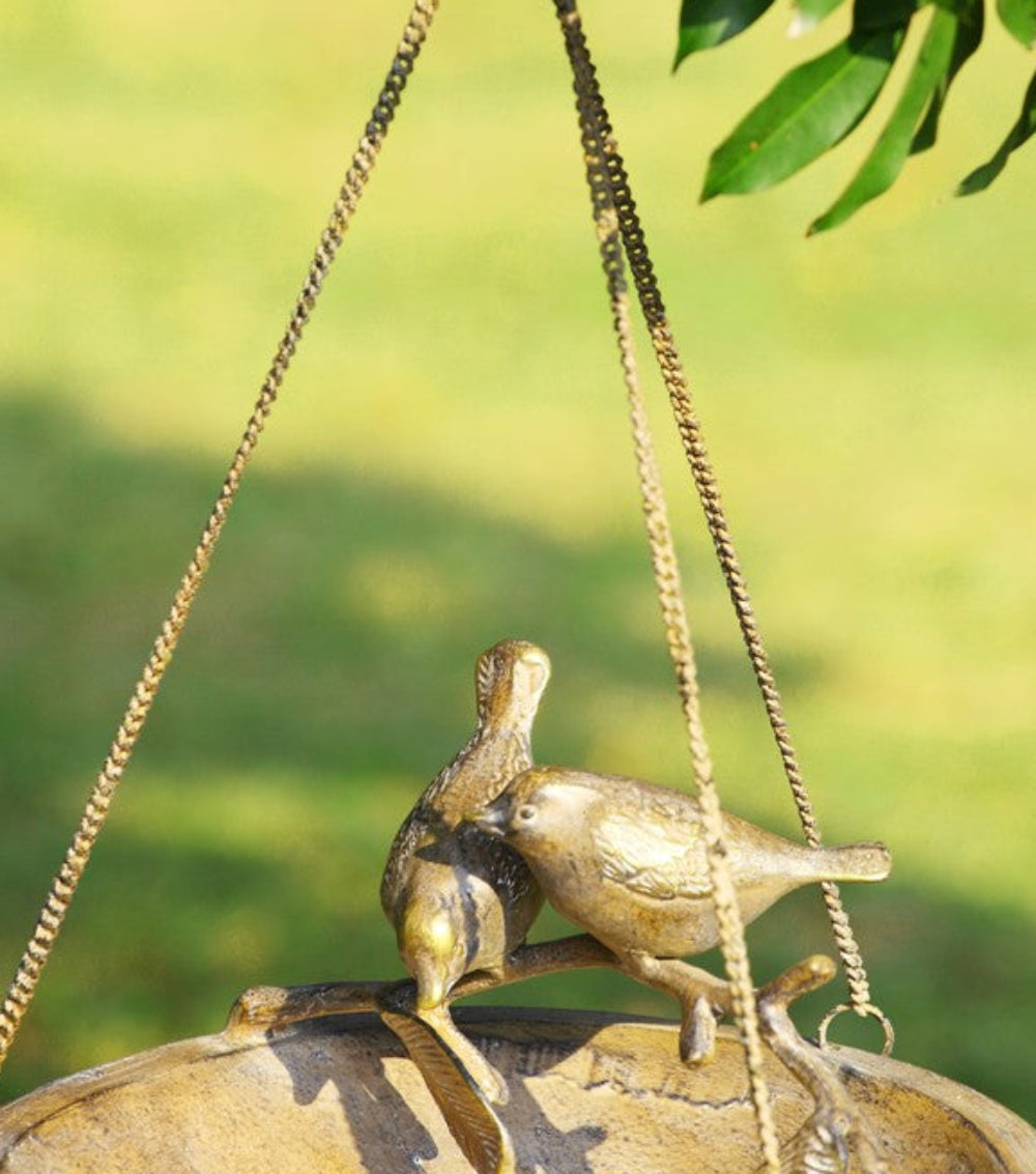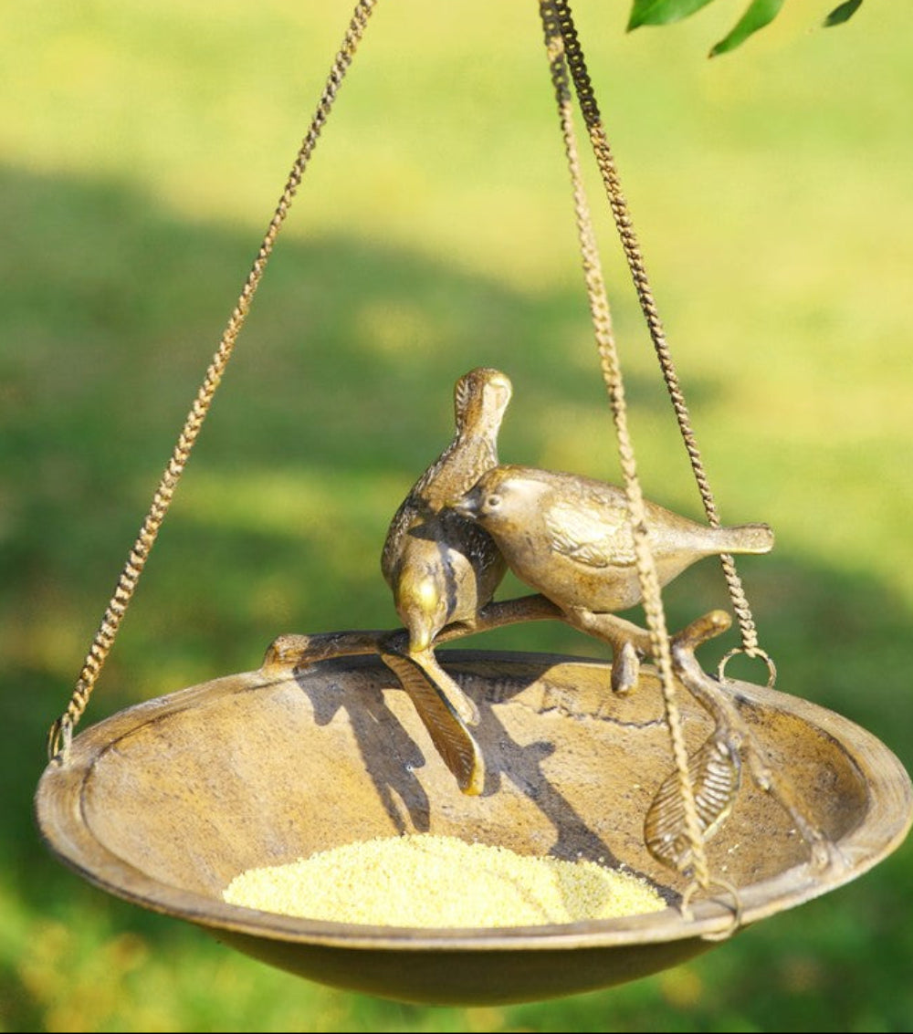 Decorative Lovebird Birdfeeder – Aluminum Hanging Outdoor Accent