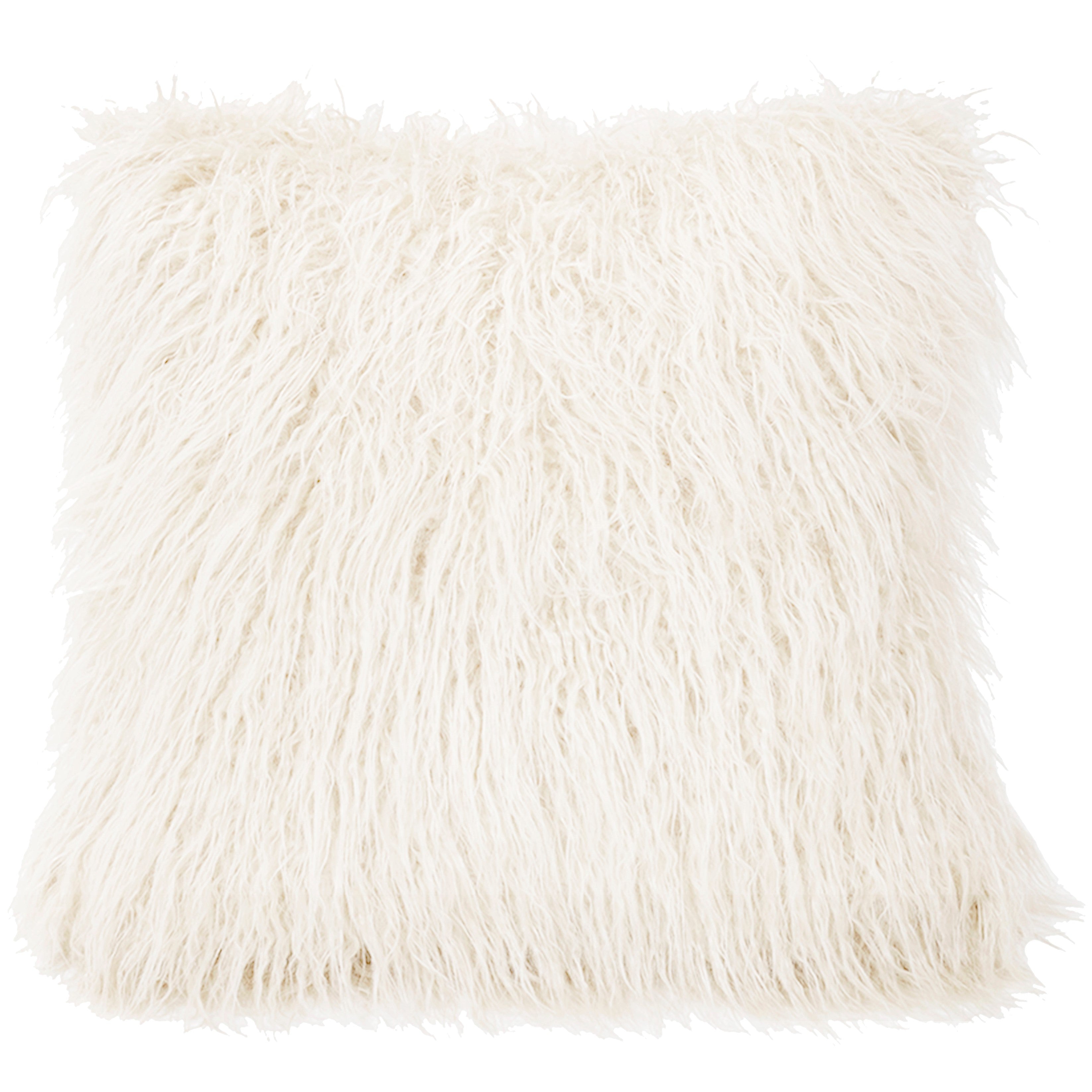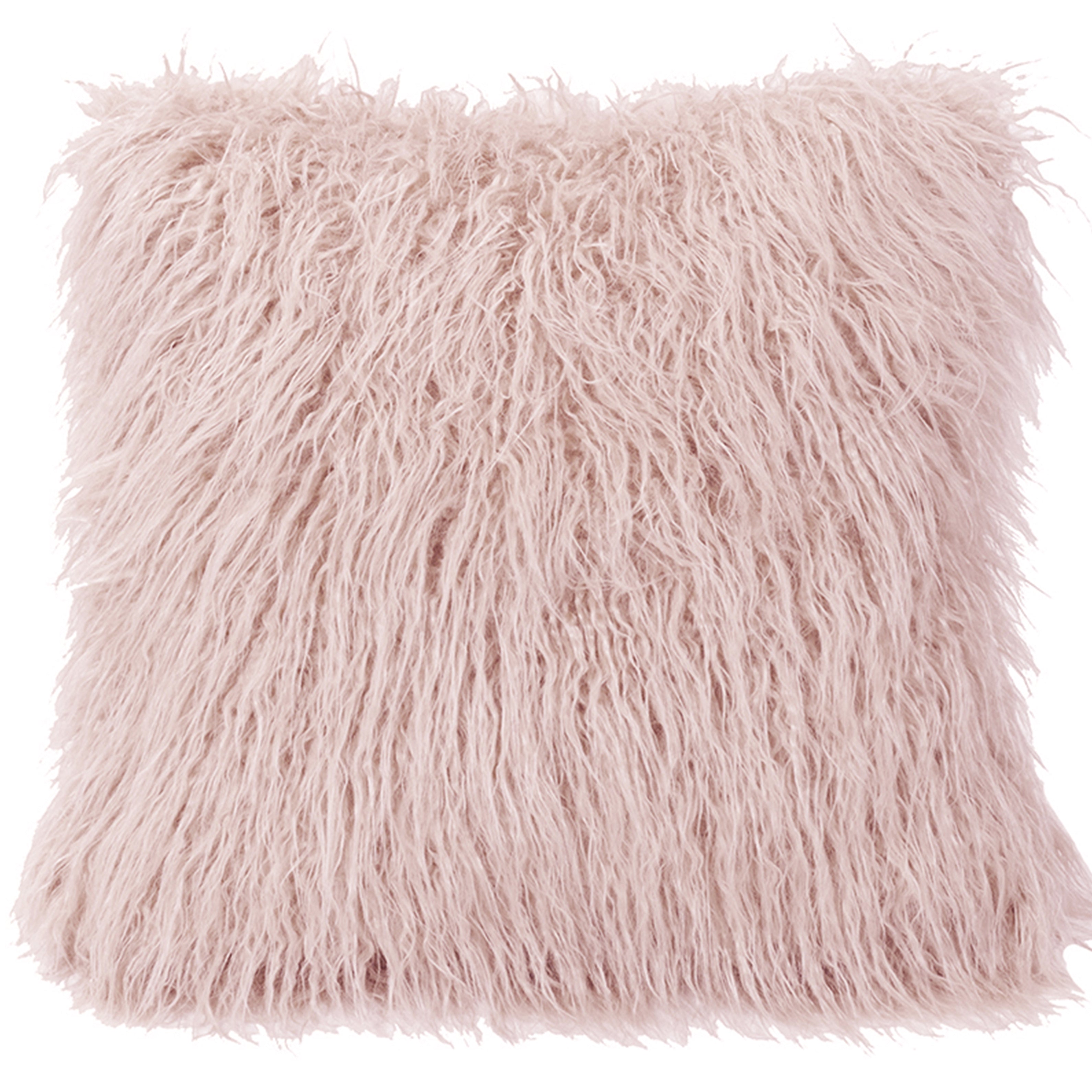 The Mongolian faux fur euro sham is perfect for anywhere you need a fun pop of color and texture. This soft, furry pillow cover is a conversation starter and show stopper. This model is in the color blush and 27x27. Hidden zipper closure. Dry clean recommended. 100% acrylic. Imported.