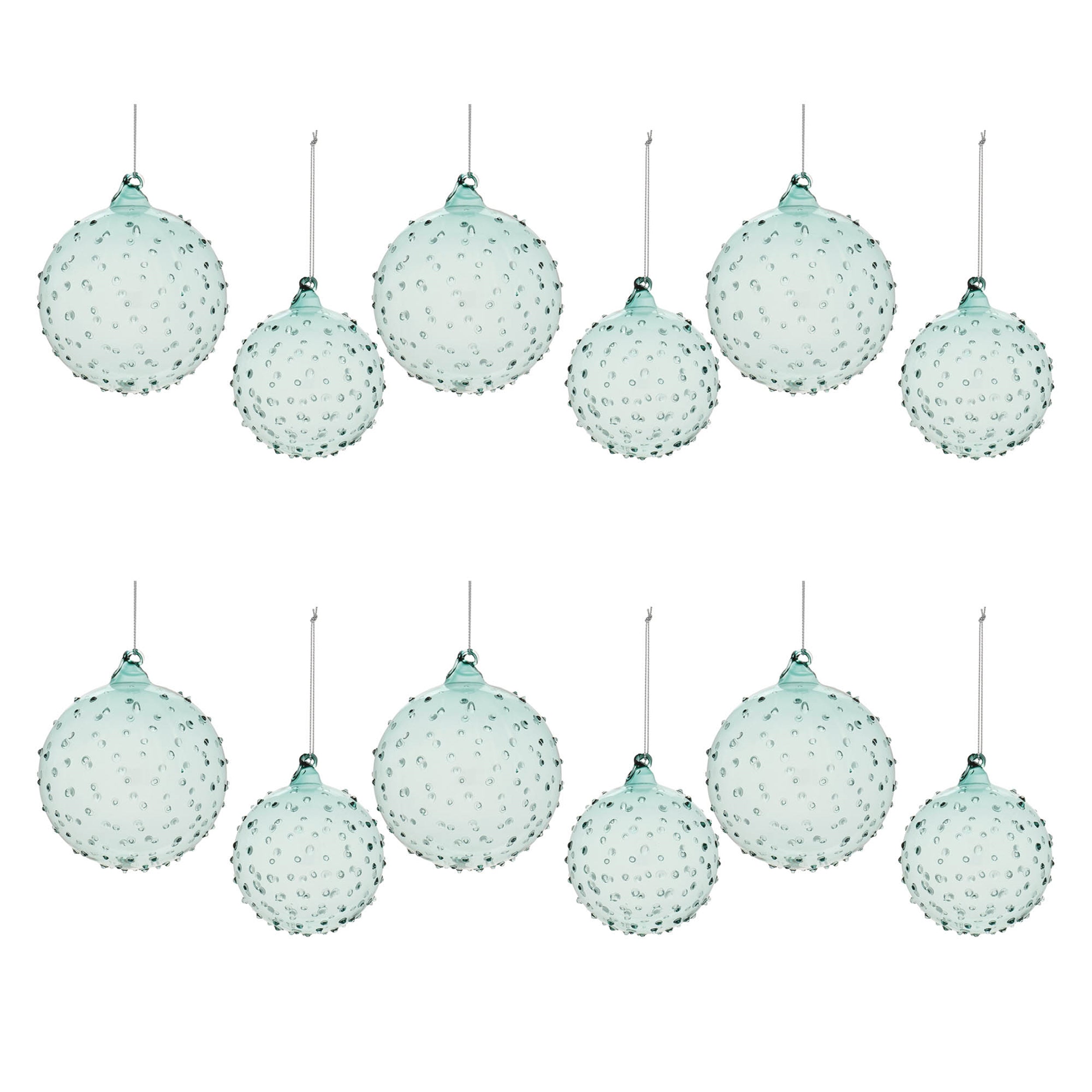 Hobnail Glass Ball Ornament Set of 12, 4 Inch Blue Green Holiday Decor