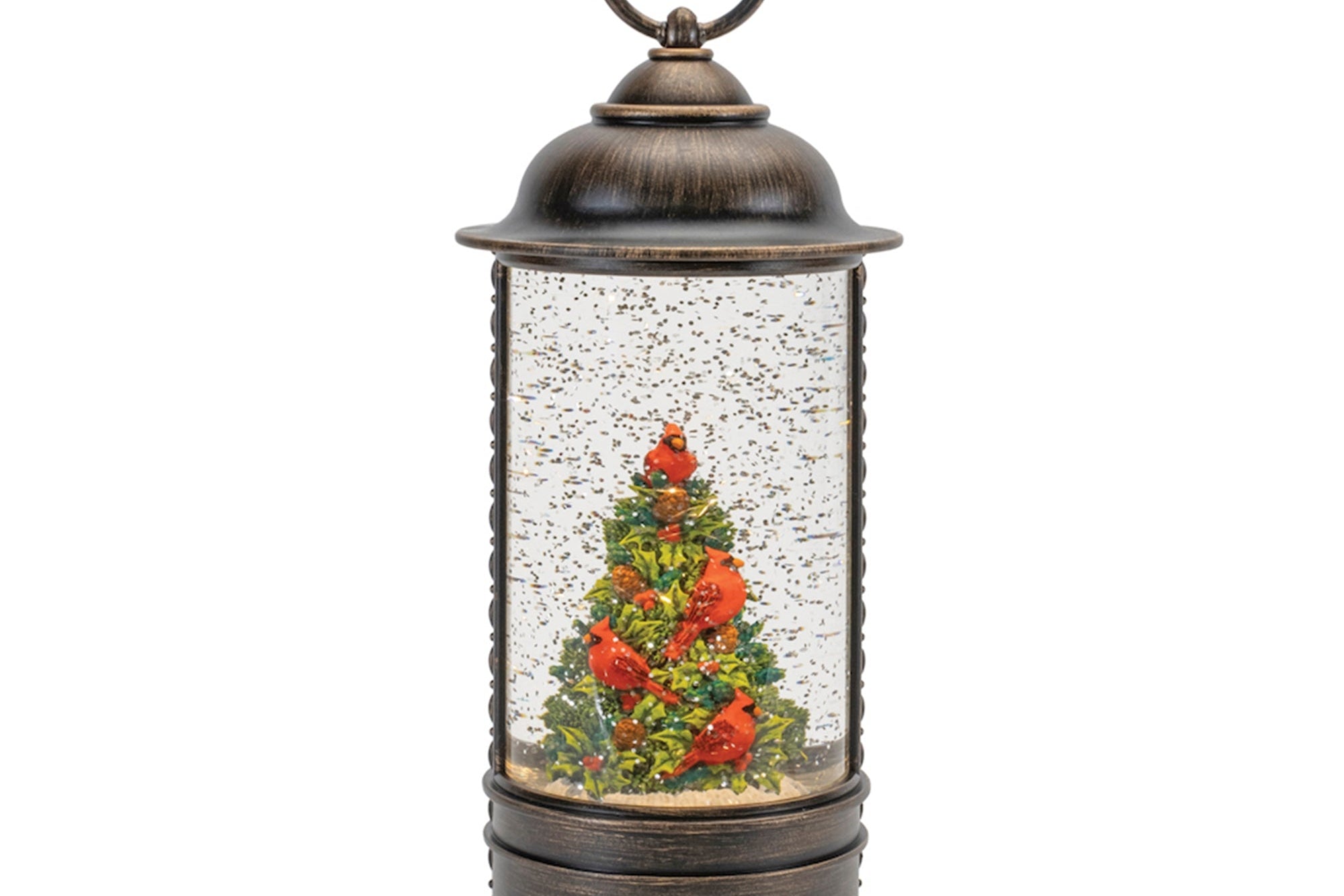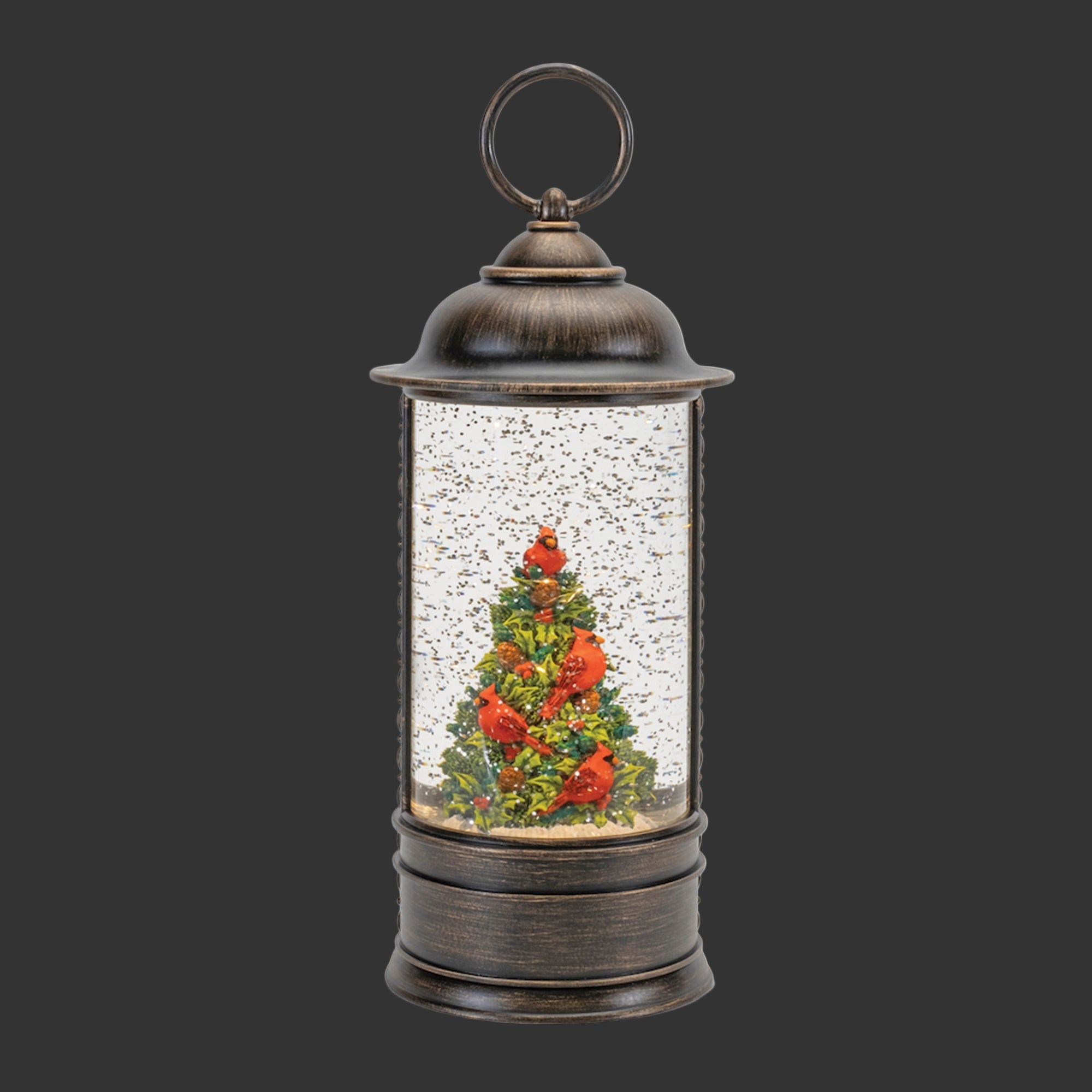 Holiday LED Snow Globe with Cardinals and Holly Tree – 9.75"H Indoor Christmas Accent By Melrose
