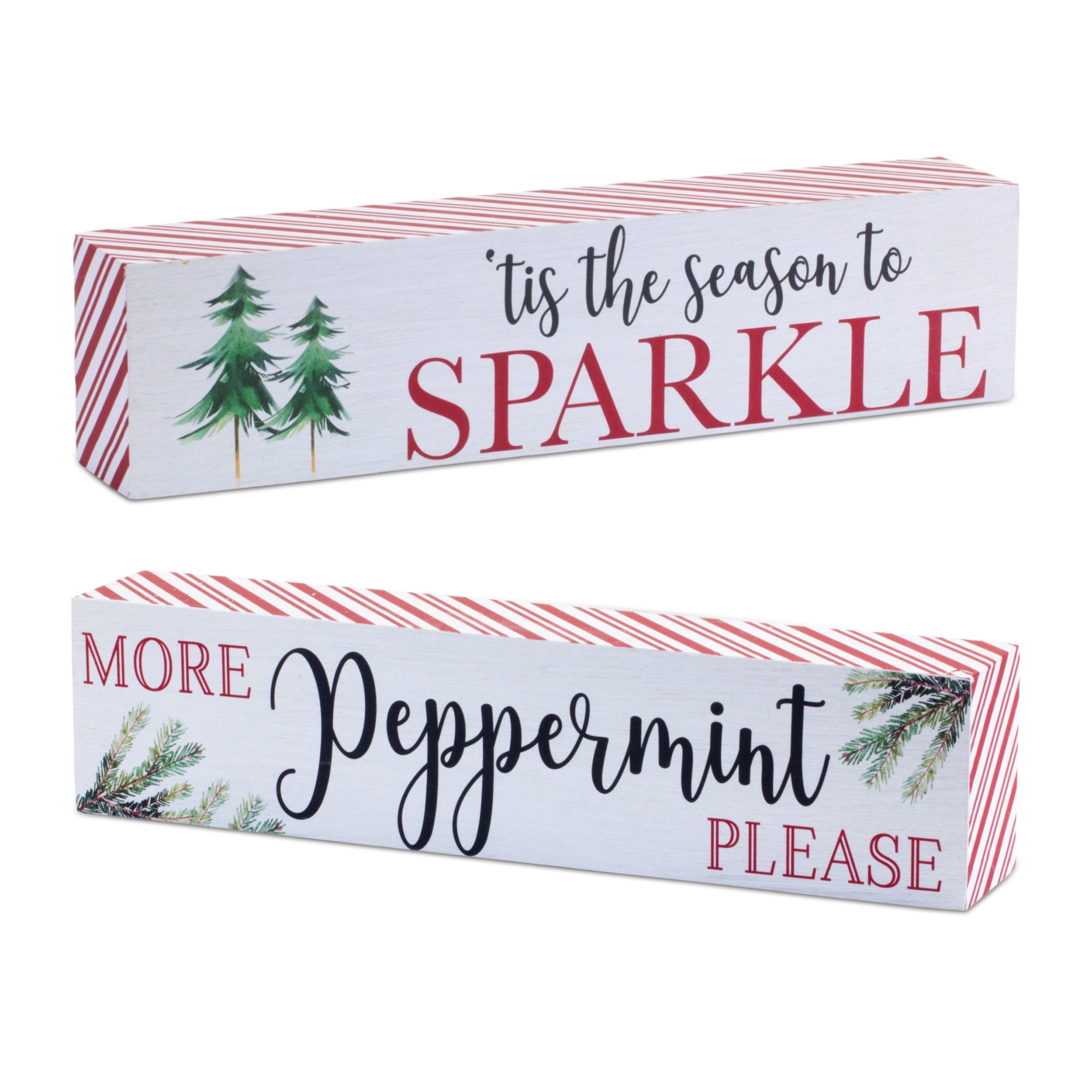 Holiday Peppermint Sentiment Sign Set – Set of 2, 9.5"L Christmas Wall & Shelf Decor by Melrose