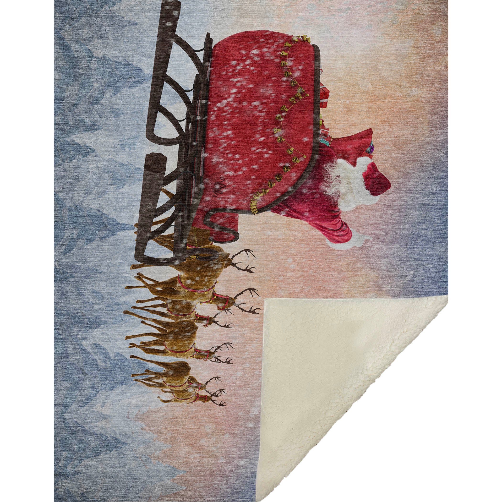 Celebrate the magic of the season with this Santa Sleigh throw blanket by One Pixie Street. Featuring a festive design of Santa’s sleigh and reindeer, this holiday-inspired accent brings warmth and joyful charm to living rooms, bedrooms, and cozy gathering spaces. The generous 50″×70″ size makes it perfect for draping over a sofa or layering at the foot of a bed during the winter season.Crafted from 100% polyester microfiber, the blanket offers a luxuriously soft-touch front paired with a plush faux shearling backing for added comfort and warmth. The fade-resistant fabric helps maintain the vibrant holiday design, making it suitable for indoor use and covered outdoor settings.Machine made with final crafting completed in the USA using domestic processing on an imported substrate. Designed for easy care, machine wash on a gentle cycle and tumble dry low. Includes a 30-day limited manufacturer warranty from the date of delivery.