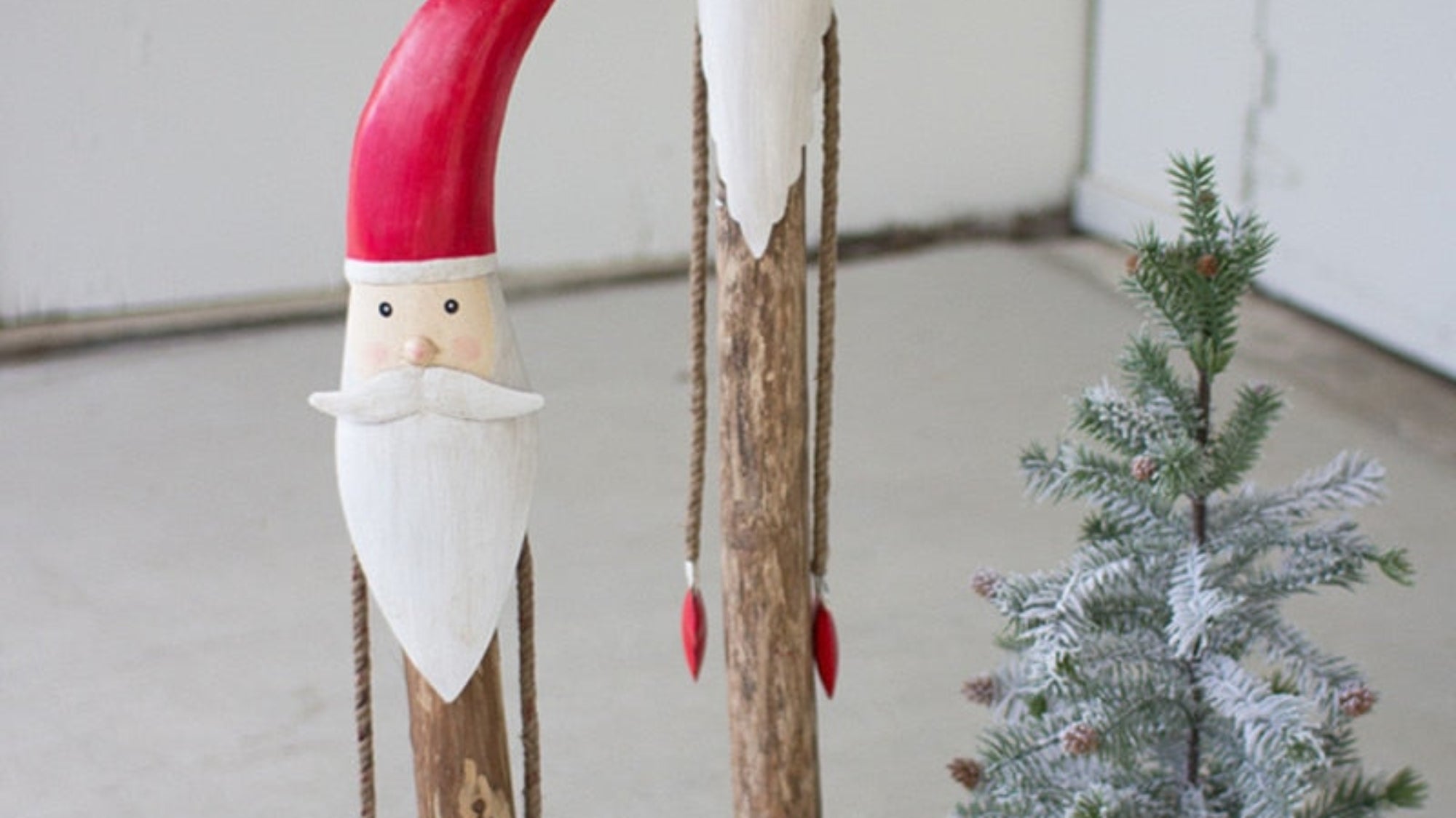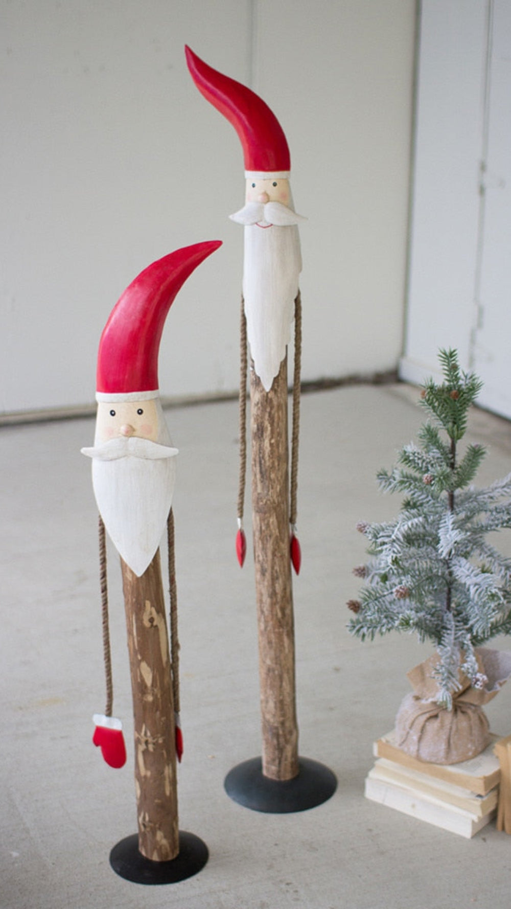 Holiday Wood and Metal Santa Figures – Set of 2 with Rope Arms by Kalalou